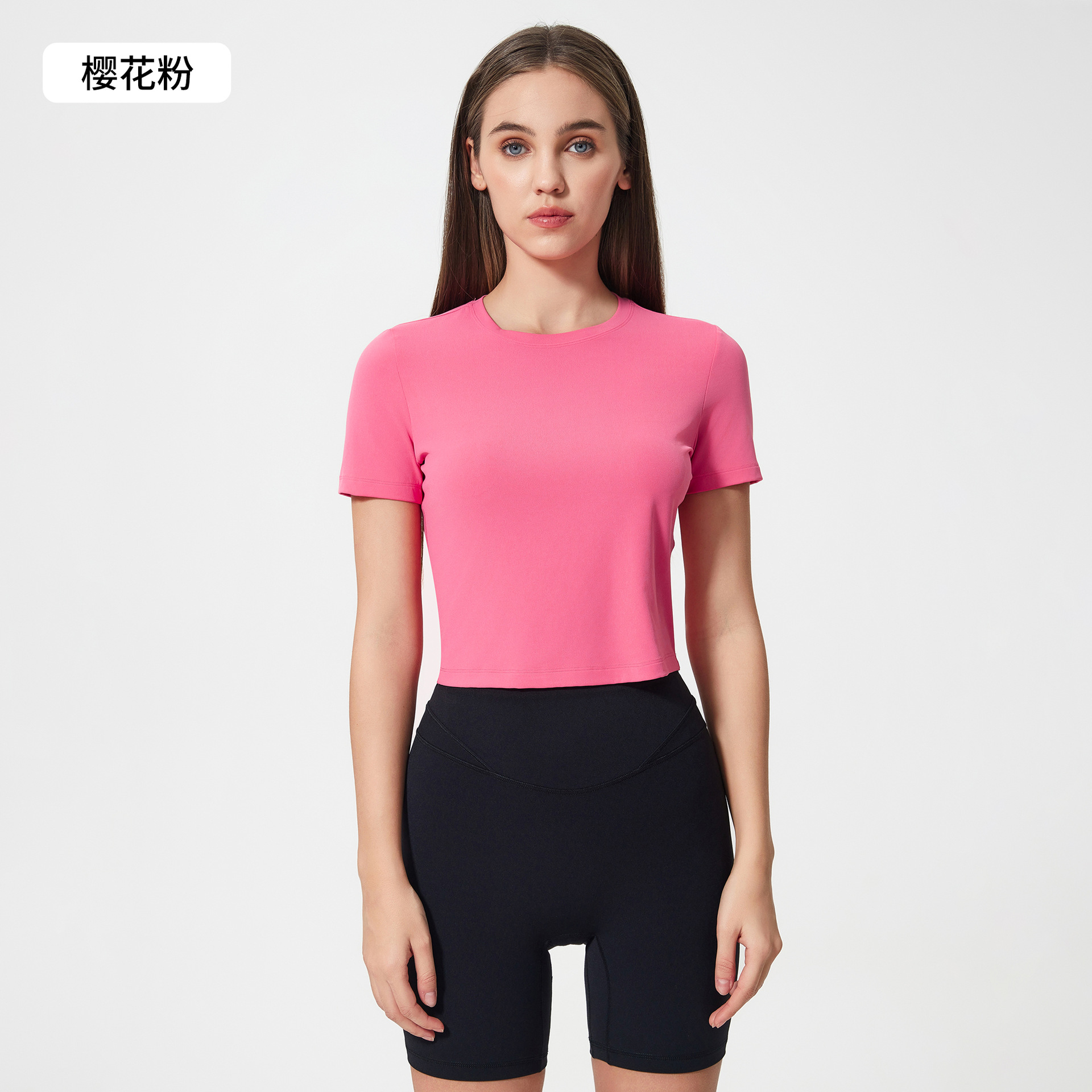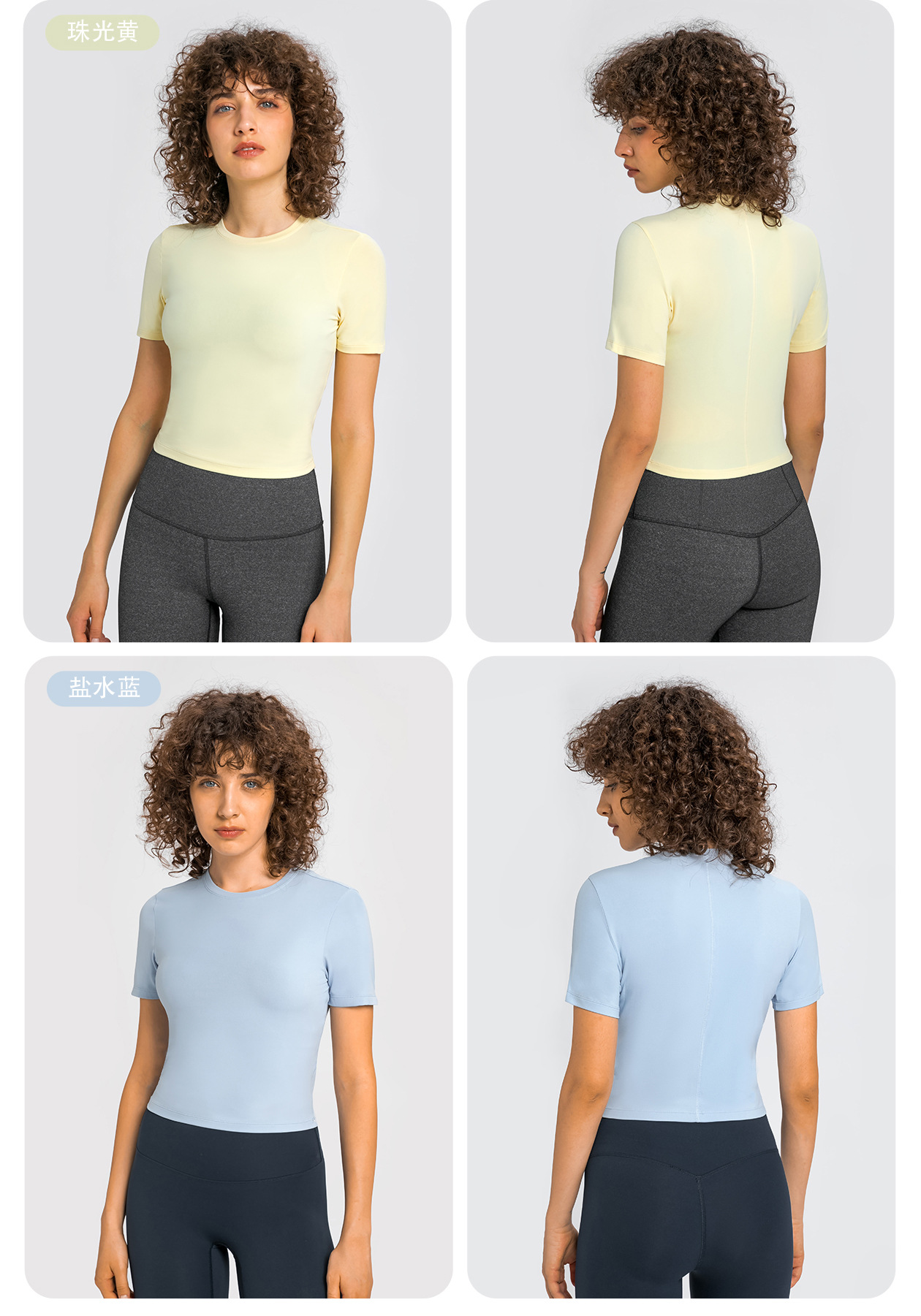 봄과 여름 새로운 벌거 벗은 높은 탄성 통기성 피트니스 요가 의류 여성용 슬림 슬리밍 러닝 반팔 티셔츠 DS158