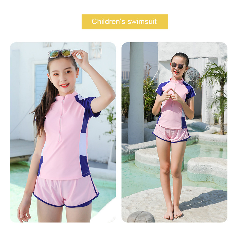 2021 새로운 여아 수영복 중간 및 큰 어린이 수영복 보수적 인 플러스 사이즈 분할 스커트 스포츠 부모-자식 수영복