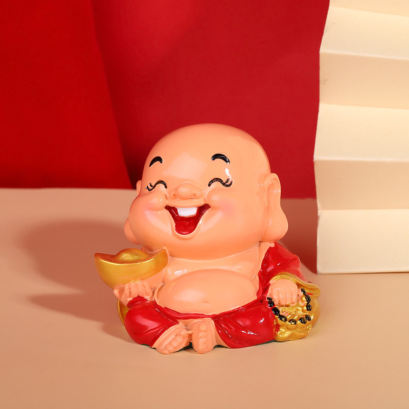 공장 직공급 창조적 인 Yuanbao 웃음 부처 케이크 장식 자동차 인테리어 장식 홈 수지 공예 노인 선물스토어 가기