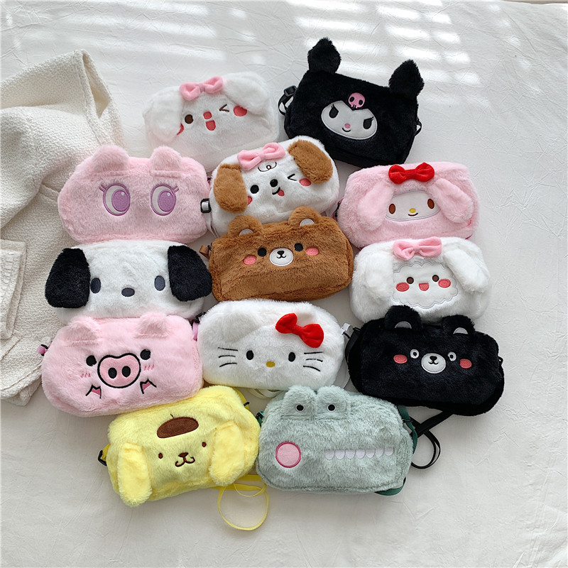 크로스 보더 도매 여성용 플러시 쿨로미 메신저 백 메이크업 백 귀여운 옥 계피 개 인 핸드백 생일 선물스토어 가기