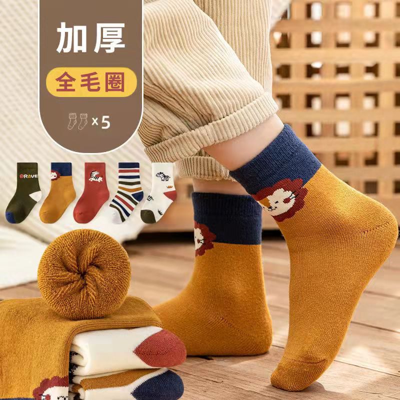 어린이 두꺼운 겨울 테리 양말 소년 만화 공룡 기모 두꺼운 아기 양말 따뜻한 수건 양말 도매