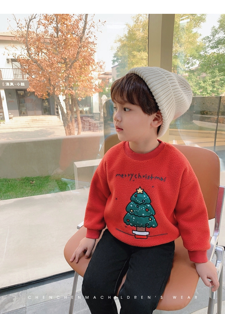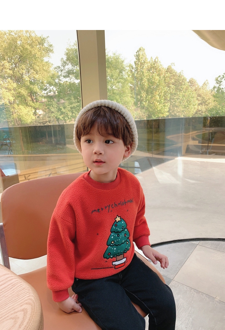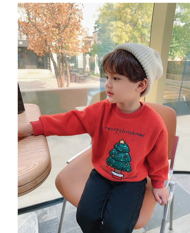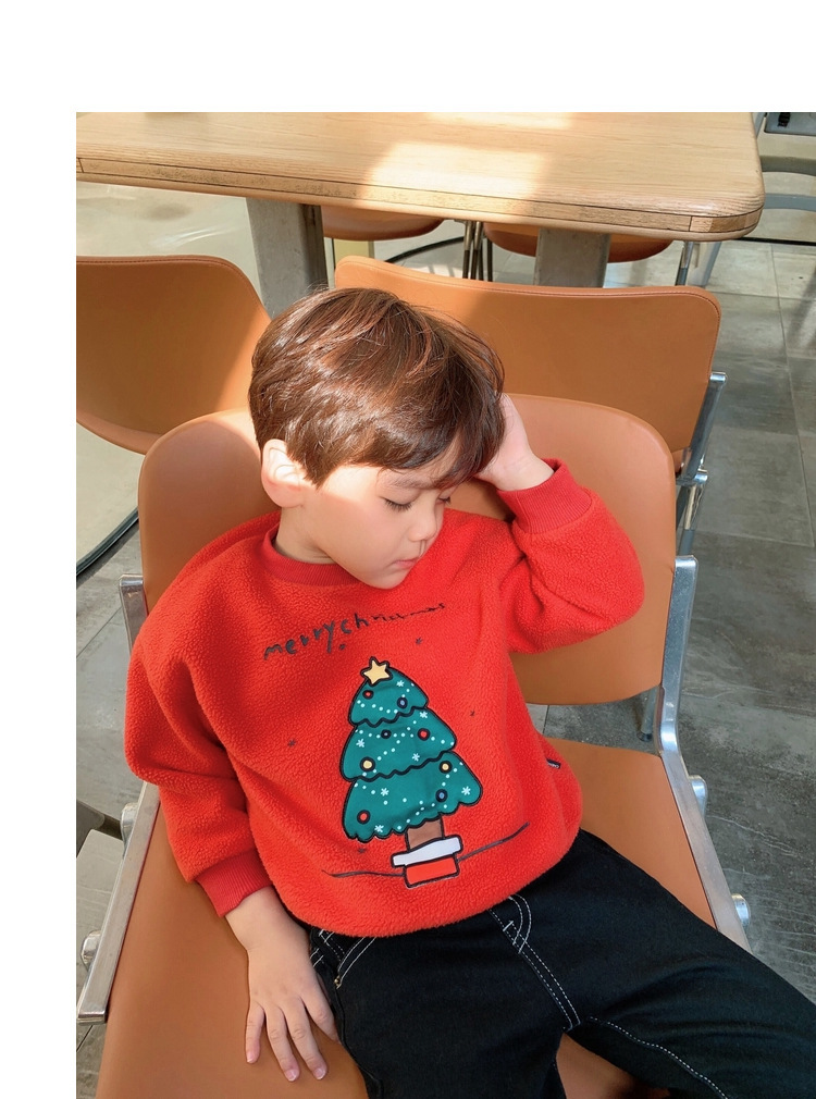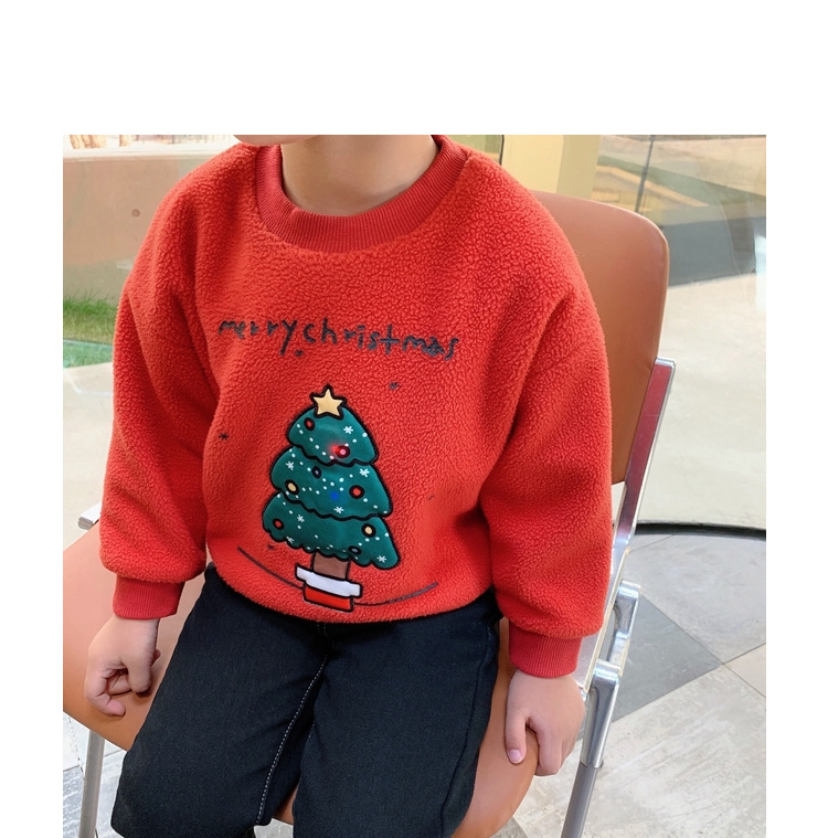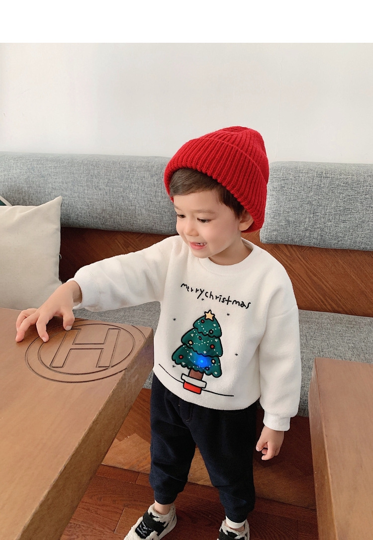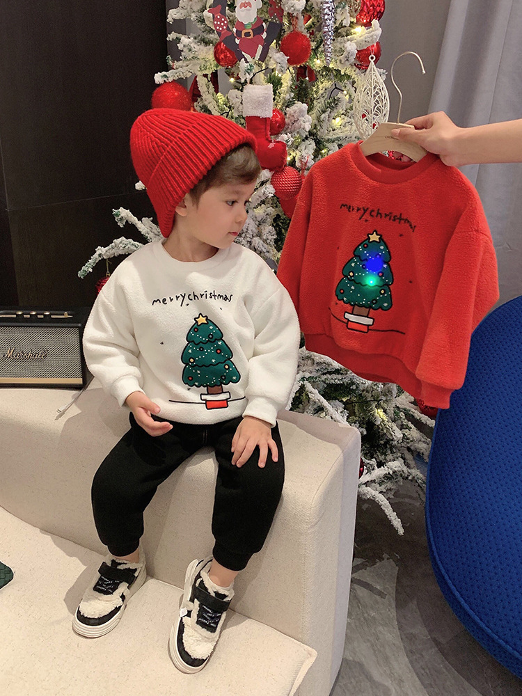 2022 소년 크리스마스 레드 기모 웨스턴 스타일 스웨터 겨울 새로운 빛나는 크리스마스 트리 양털 스웨터