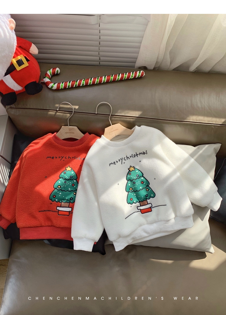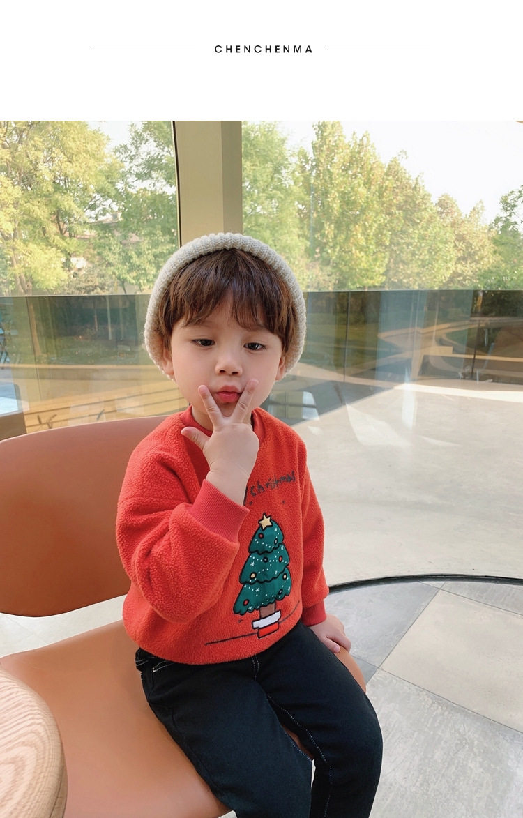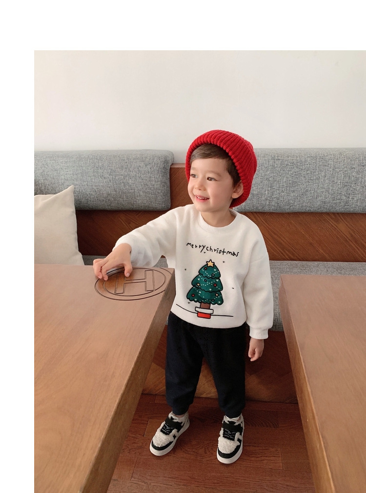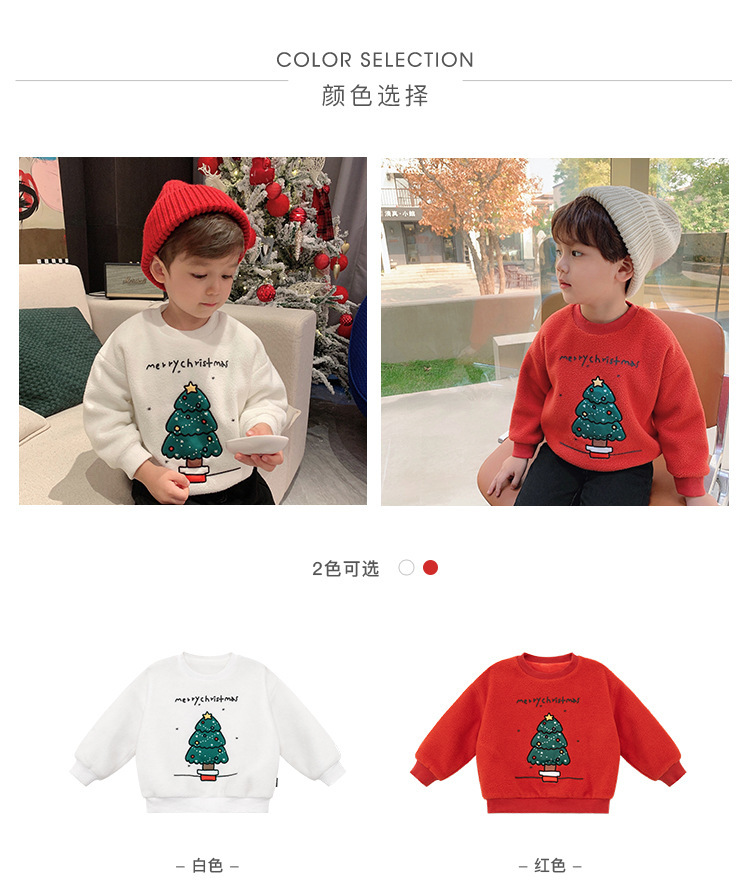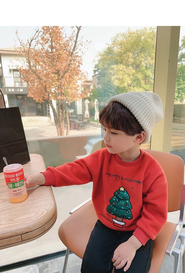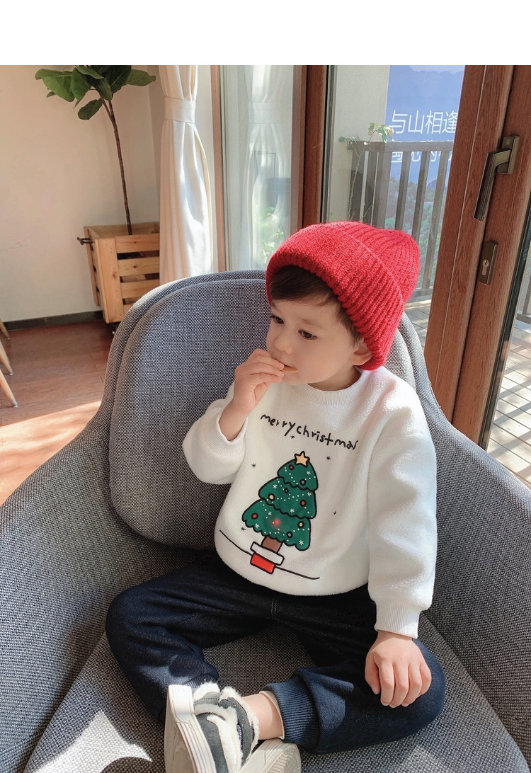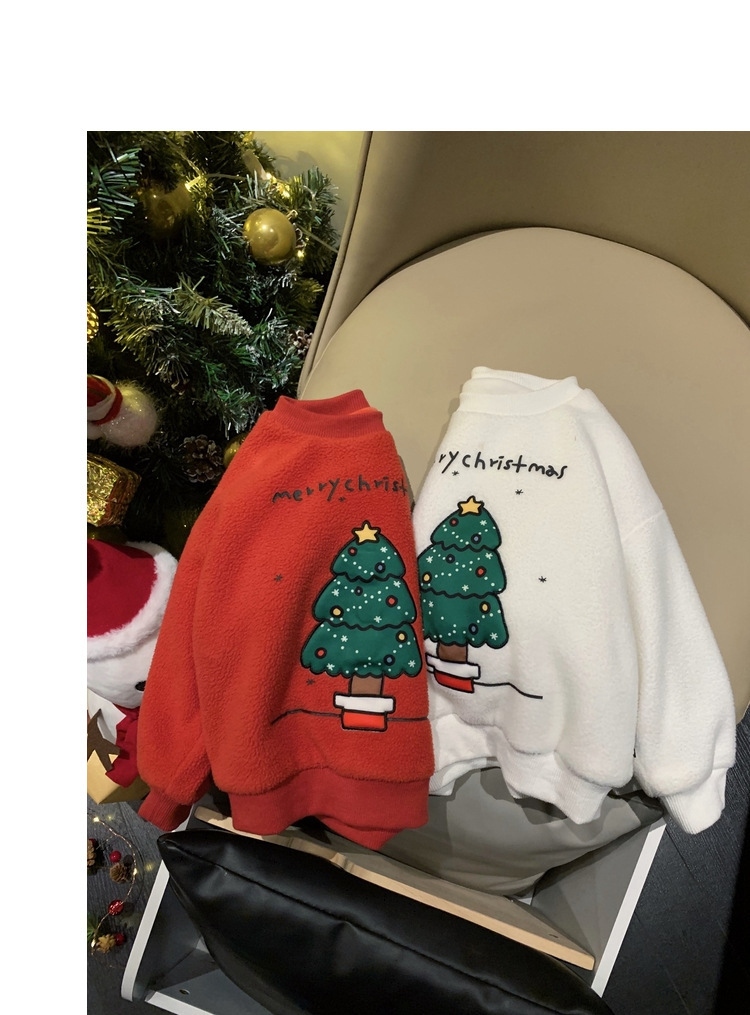 2022 소년 크리스마스 레드 기모 웨스턴 스타일 스웨터 겨울 새로운 빛나는 크리스마스 트리 양털 스웨터