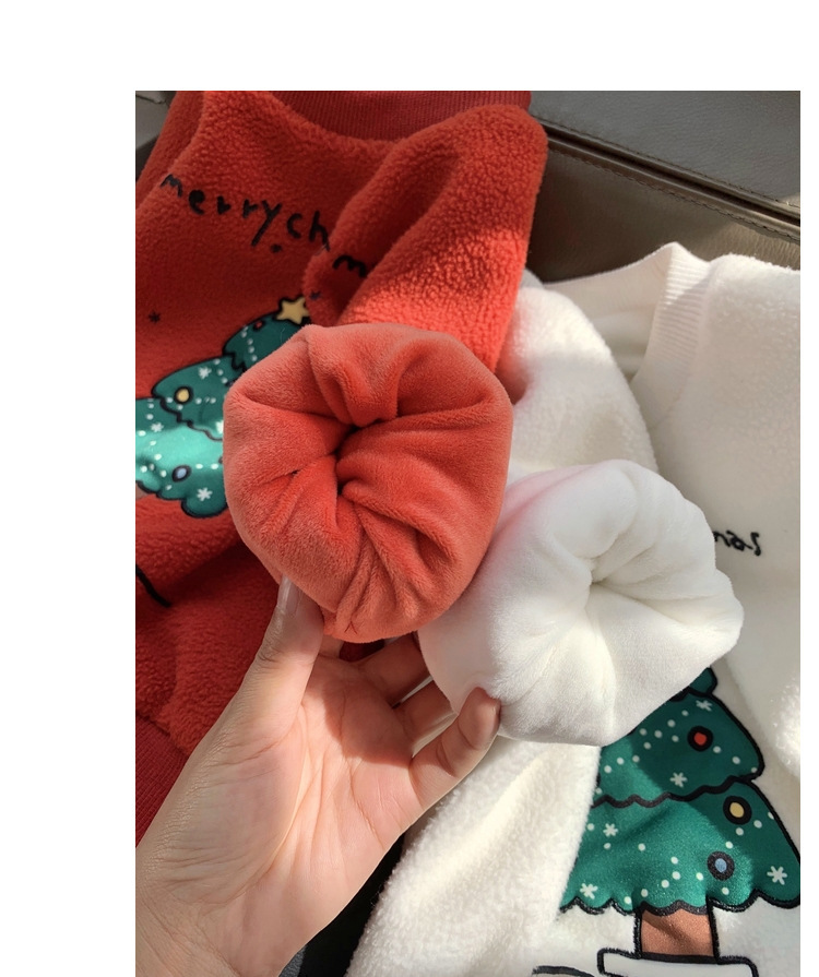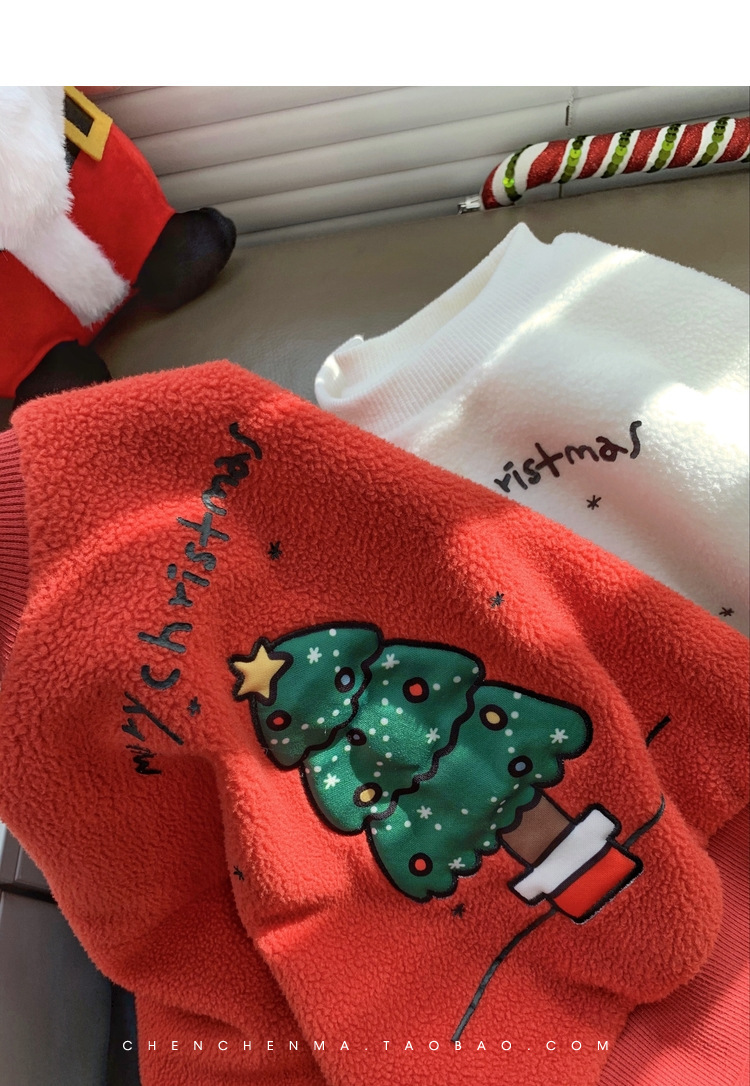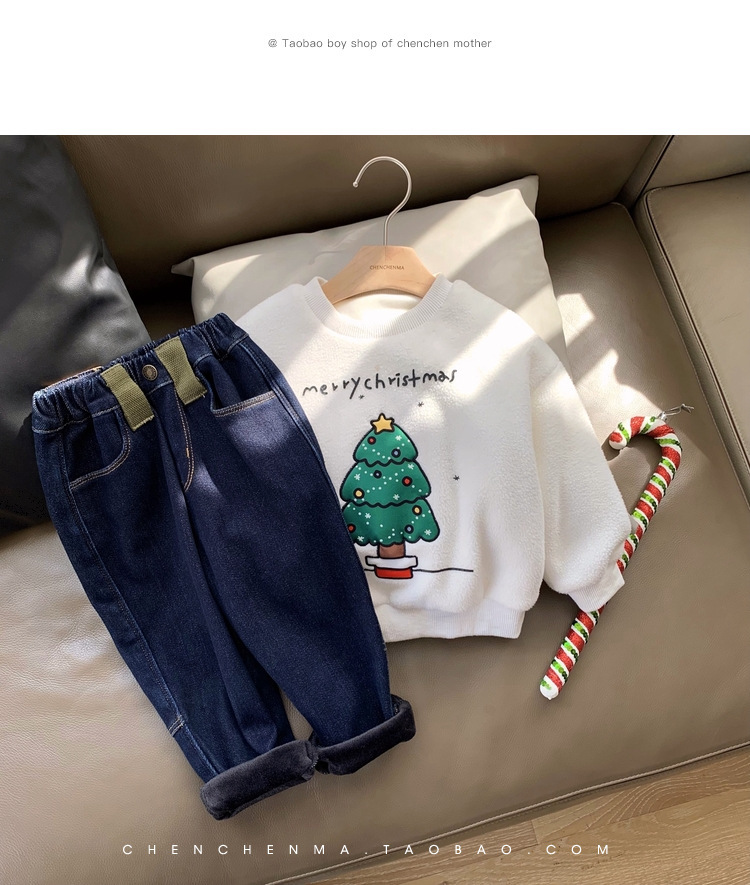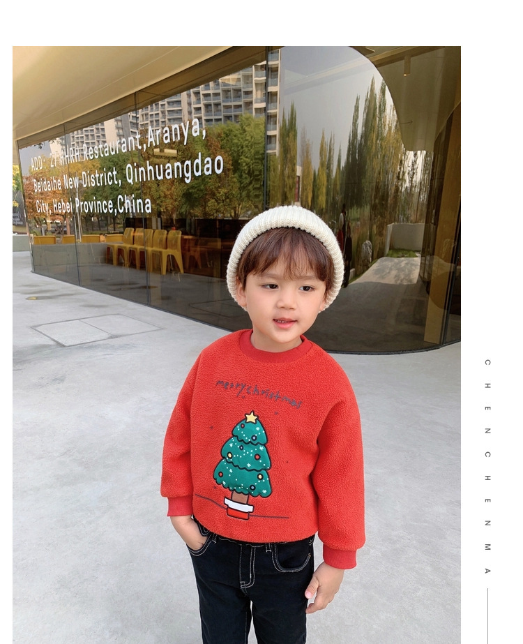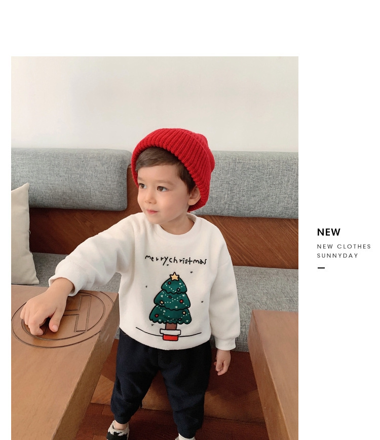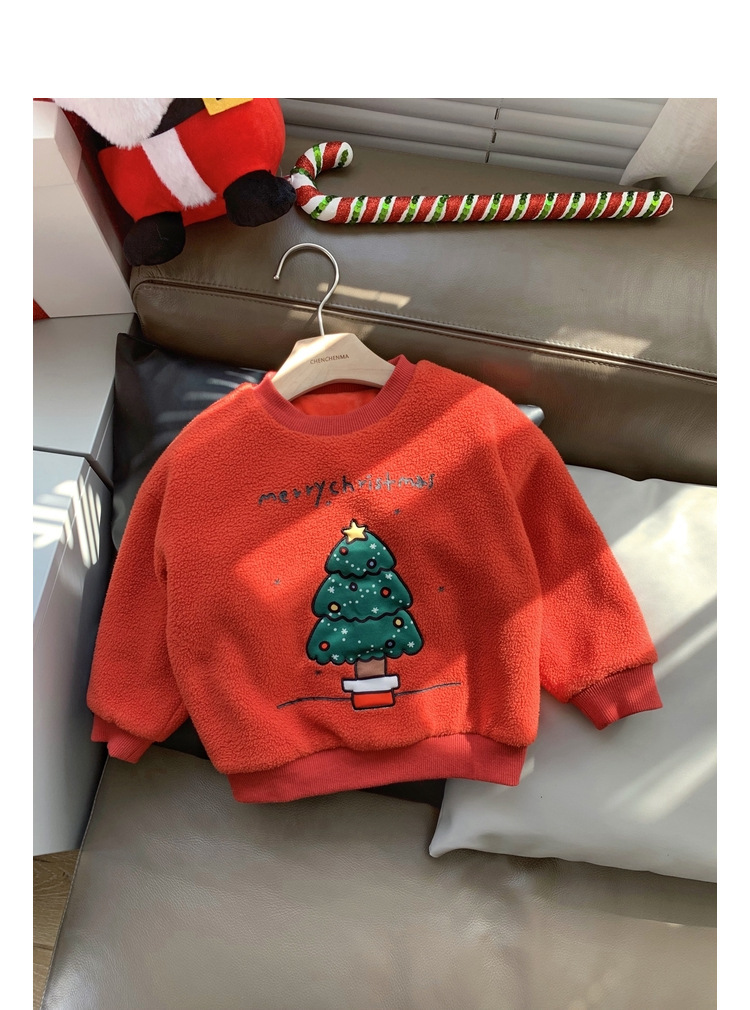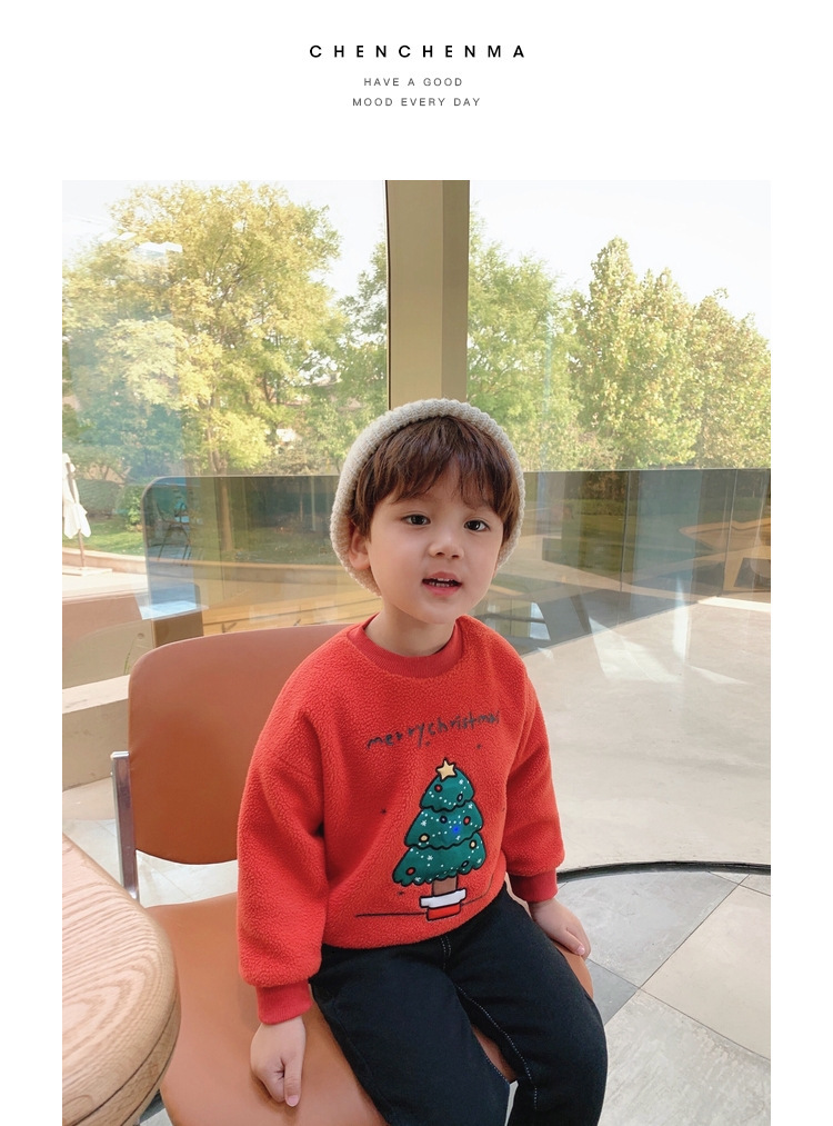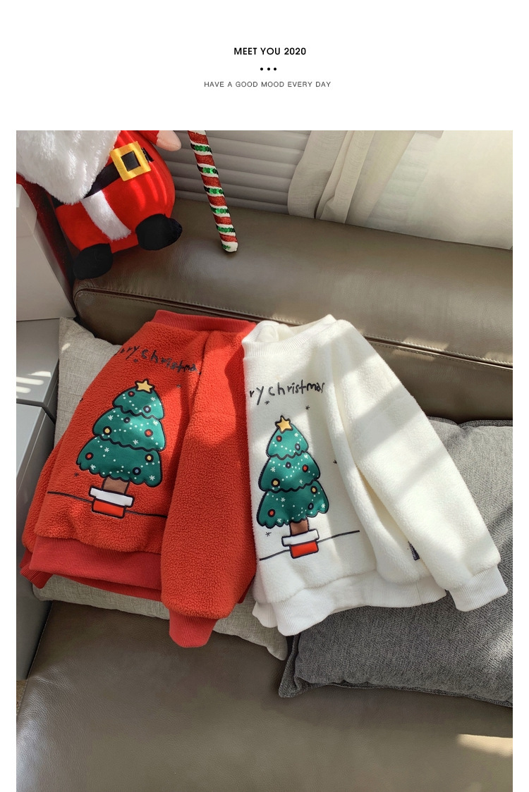 2022 소년 크리스마스 레드 기모 웨스턴 스타일 스웨터 겨울 새로운 빛나는 크리스마스 트리 양털 스웨터