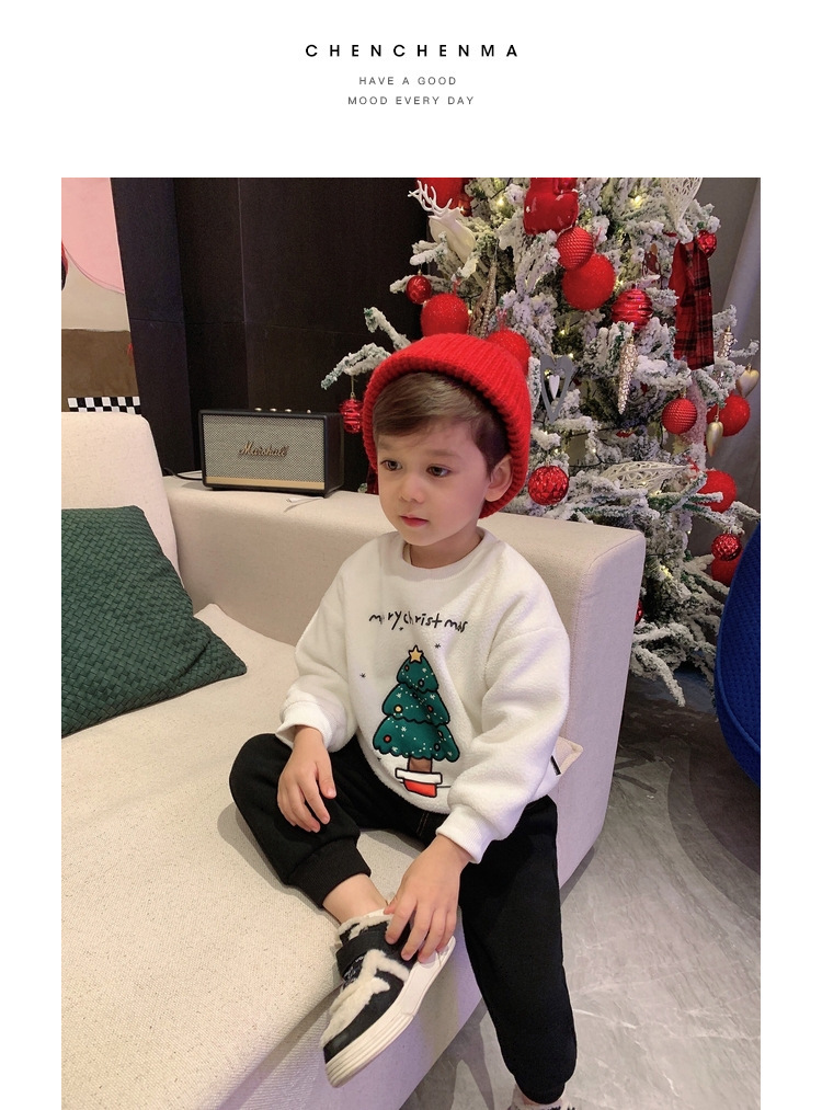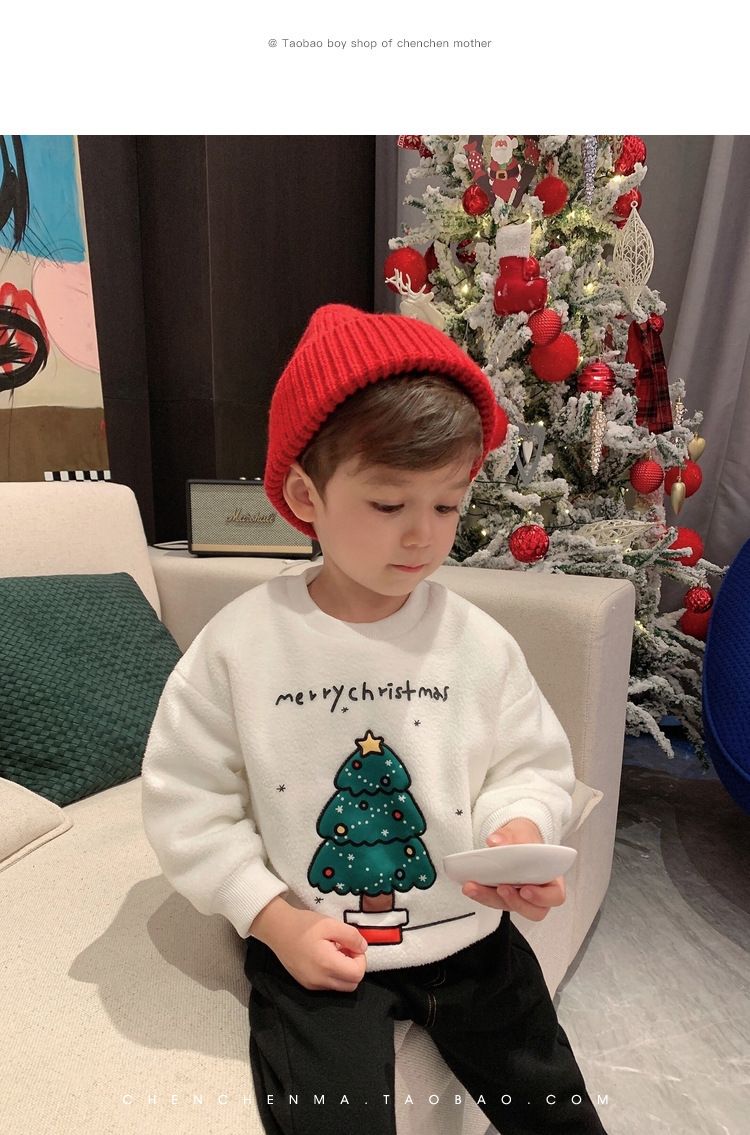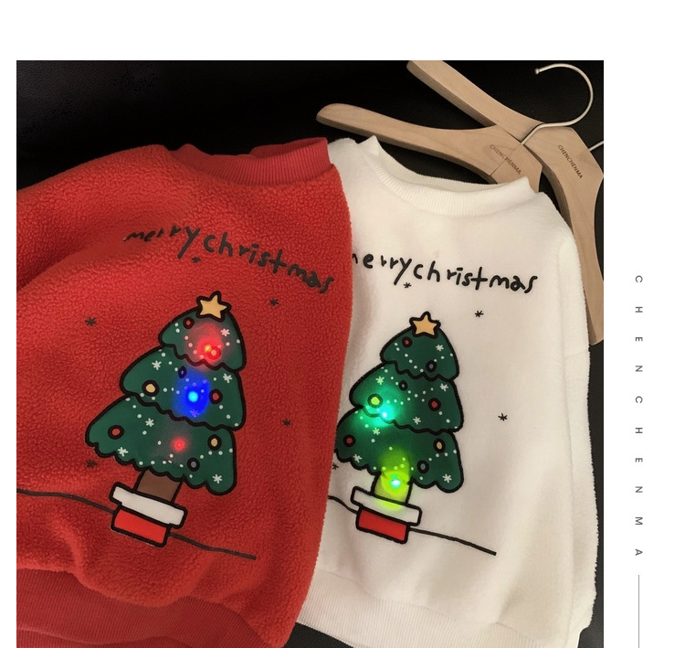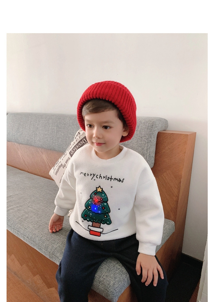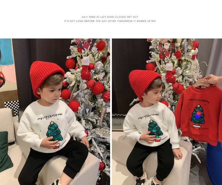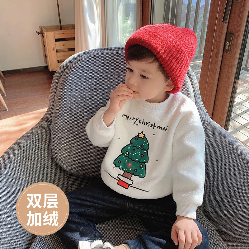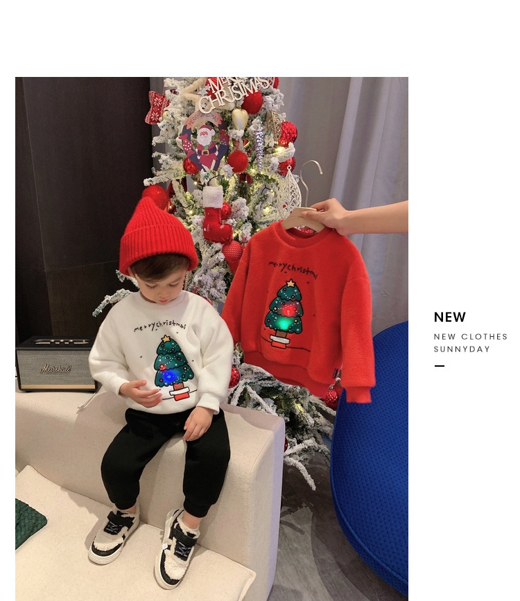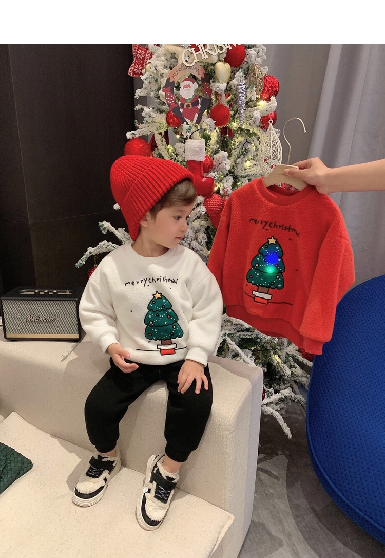 2022 소년 크리스마스 레드 기모 웨스턴 스타일 스웨터 겨울 새로운 빛나는 크리스마스 트리 양털 스웨터스토어 가기