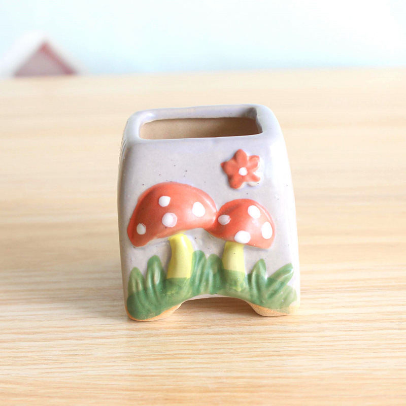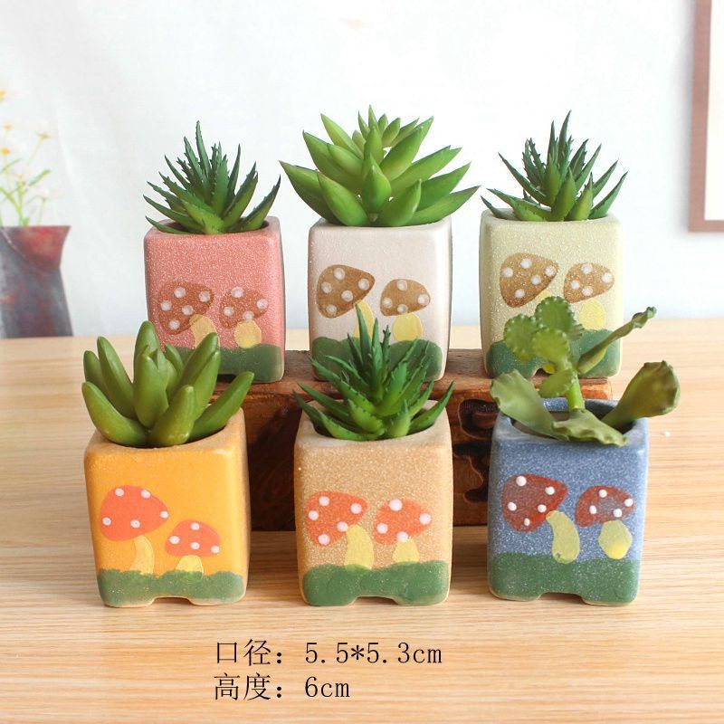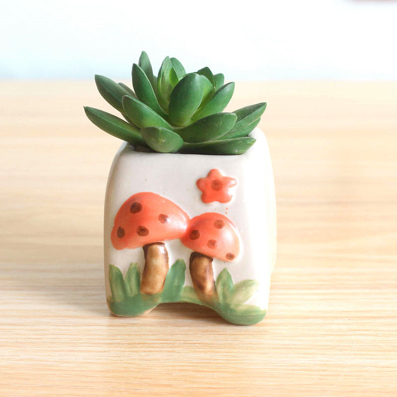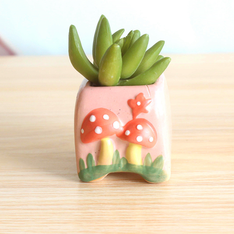 다육 식물 양각 버섯 화분 창조적 인 다육 꽃 냄비 세라믹 간단한 다육 냄비 2859