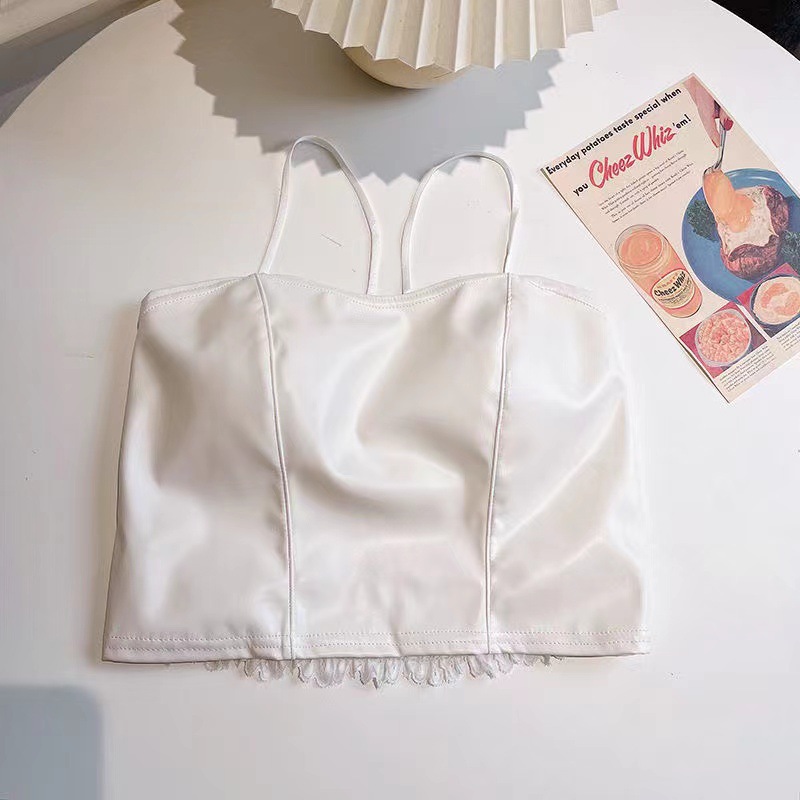 Pu 가죽 포트 스타일 캐미솔 여성용 우아한 올매치 탑 웨어러블 가슴 패드 통합 개더링 여성용 아름다운 백 랩스토어 가기