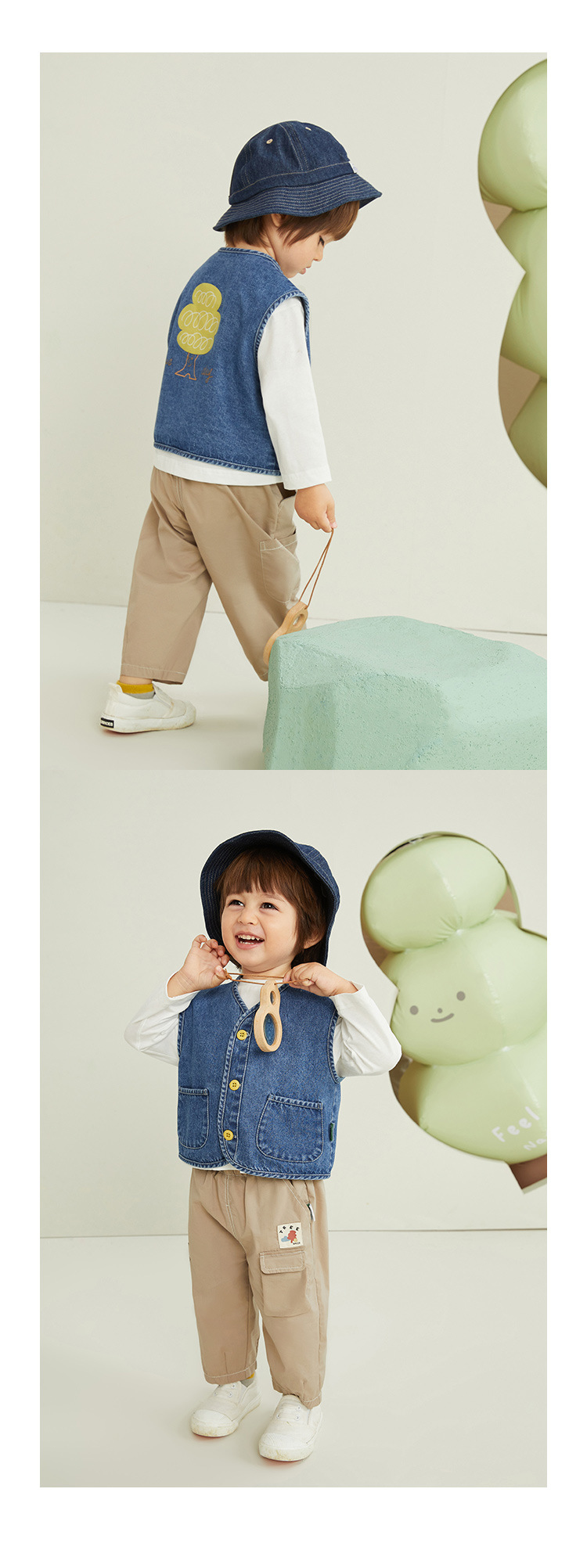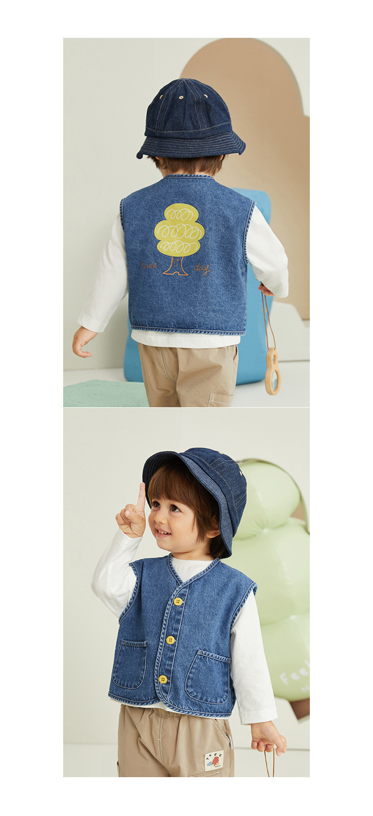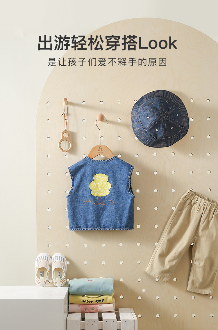 아미라 아동복 2026 봄 신상 아동 데님 조끼 외투 남아 유아 한국 스타일 다용도 재킷 트렌디스토어 가기