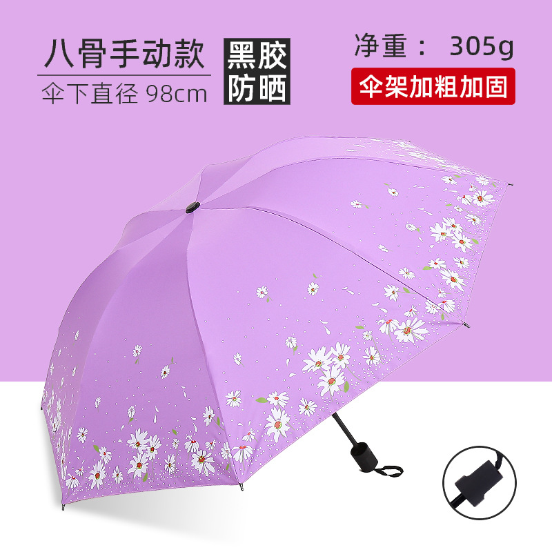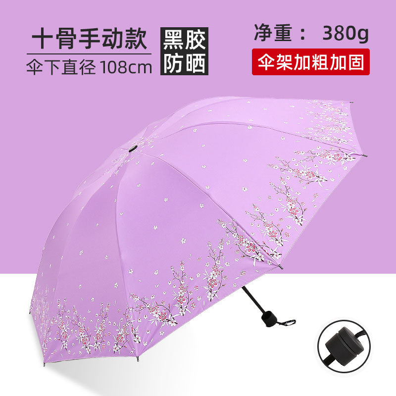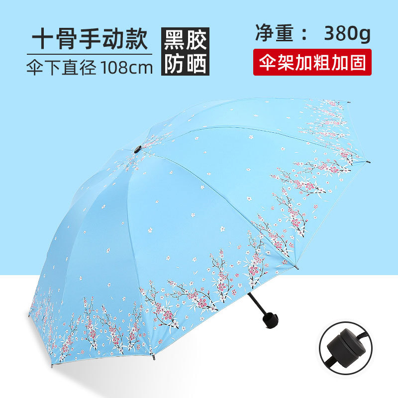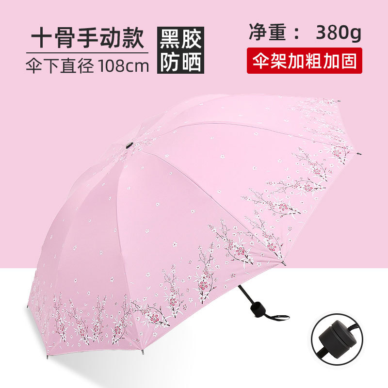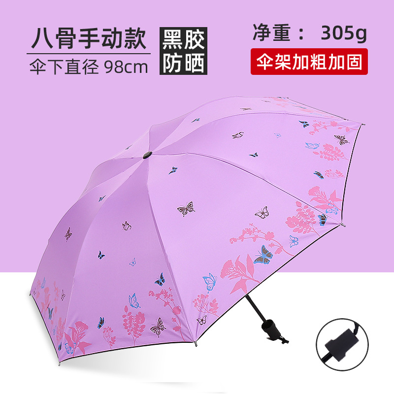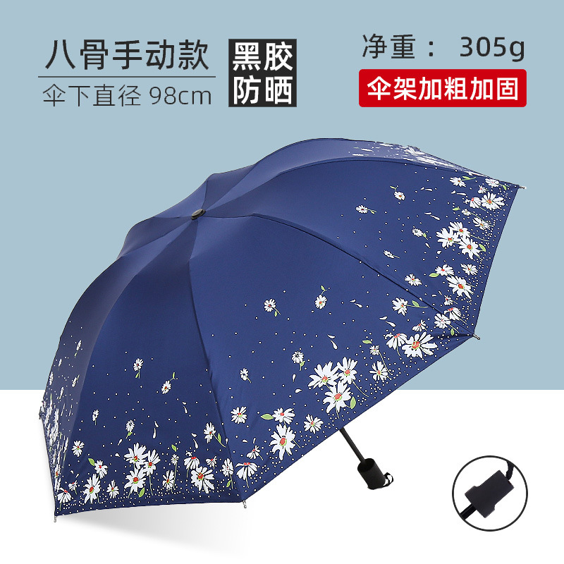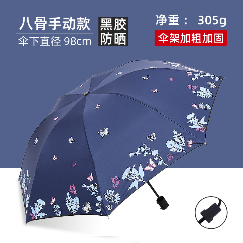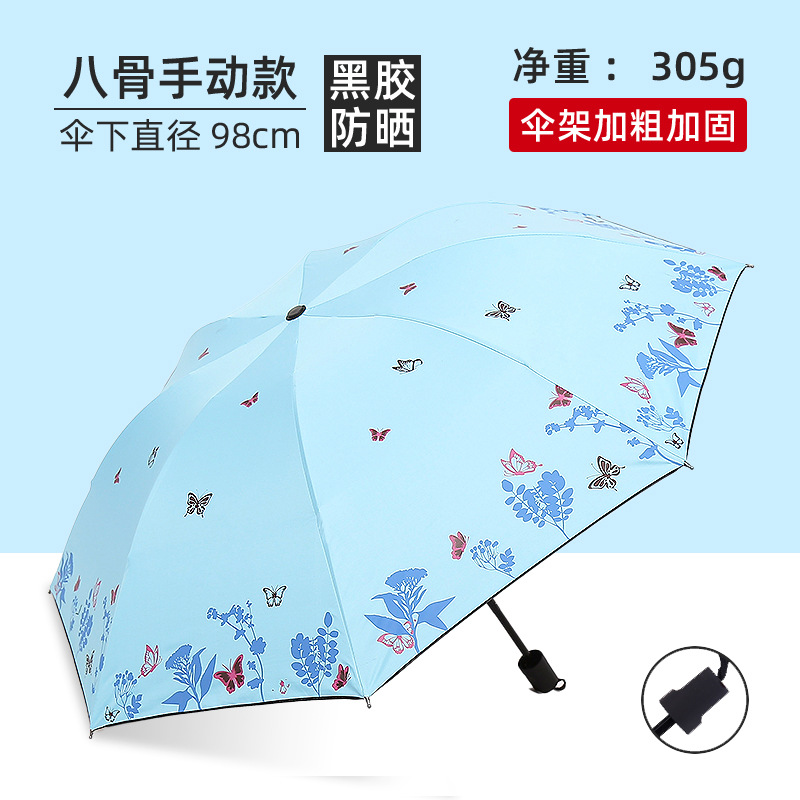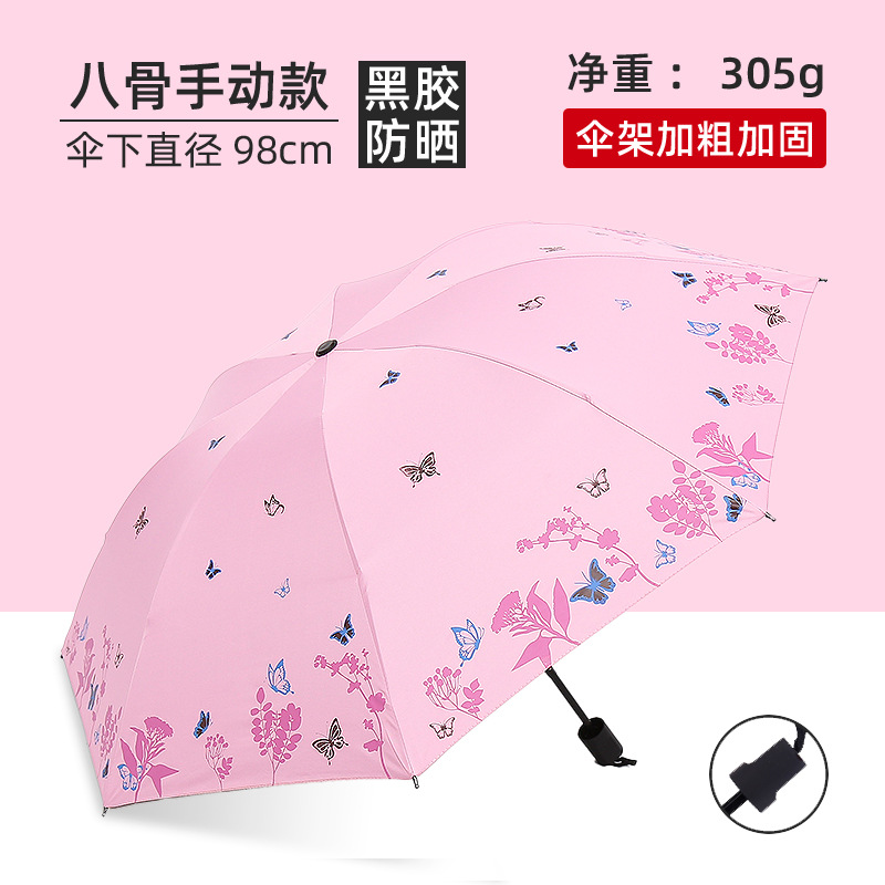 비와 비 이중 사용 우산 여성 우산 한국 작은 신선한 태양 우산 3 접이식 검은 접착제 태양 보호 UV 보호 차양 우산스토어 가기