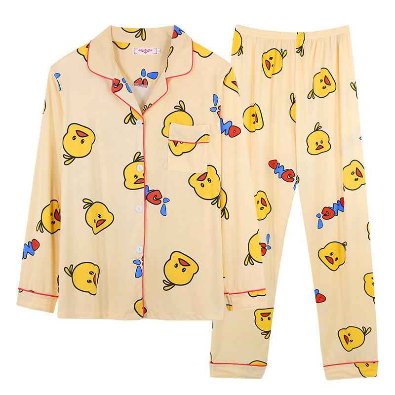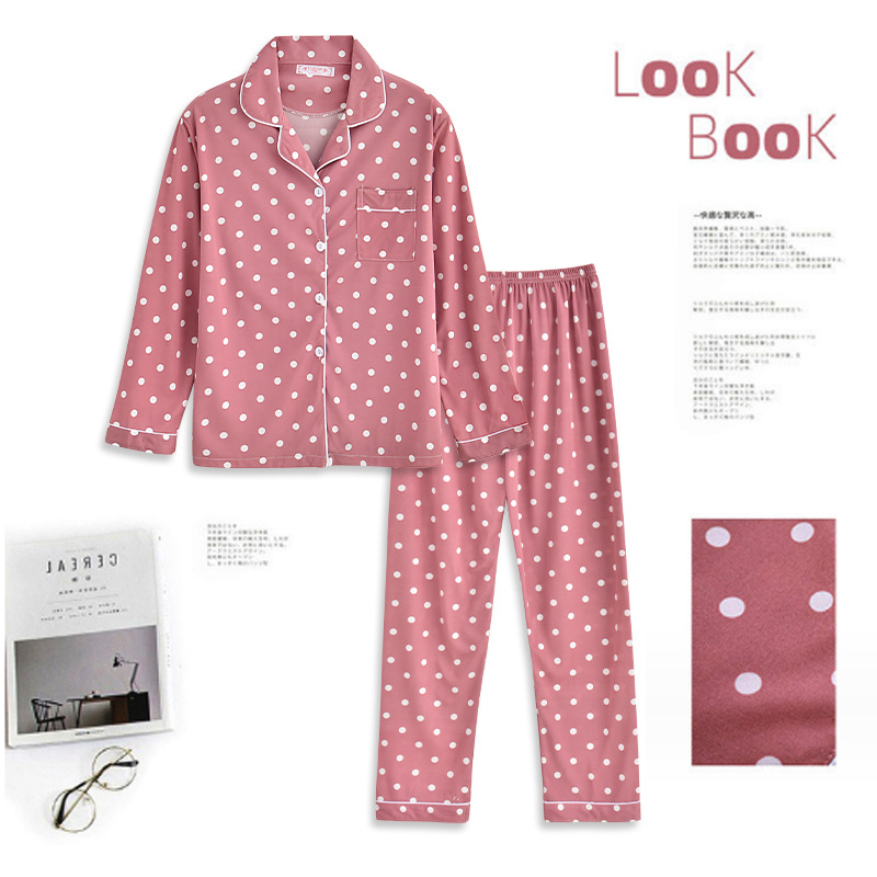 봄과 가을 새로운 잠옷 여성의 가을과 겨울 긴 소매 옷깃 카디건 세트 바지 플러스 사이즈 가정용 옷 얇은 세대스토어 가기