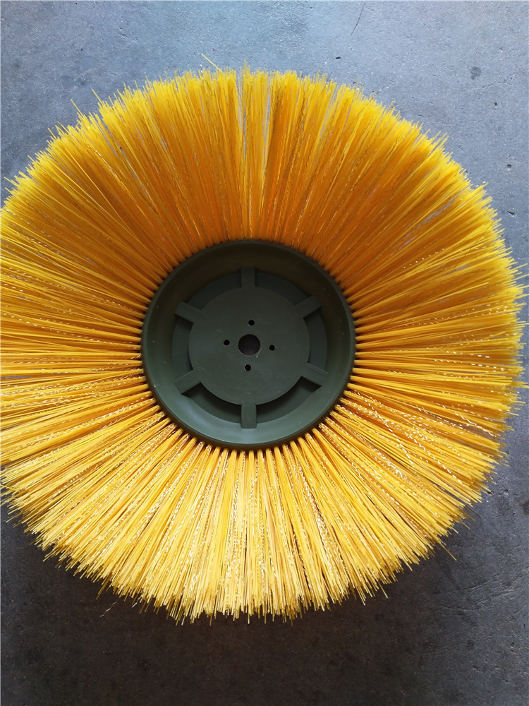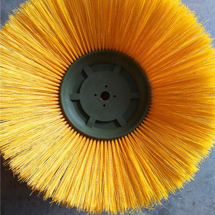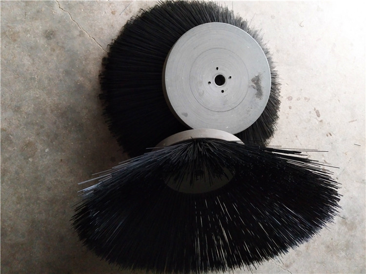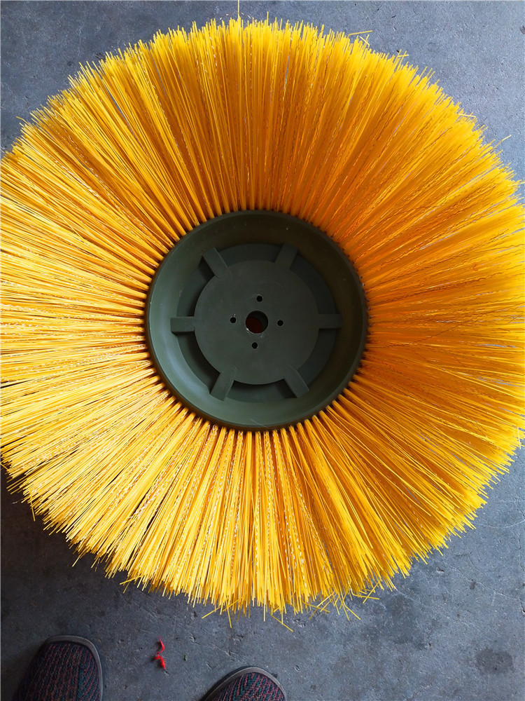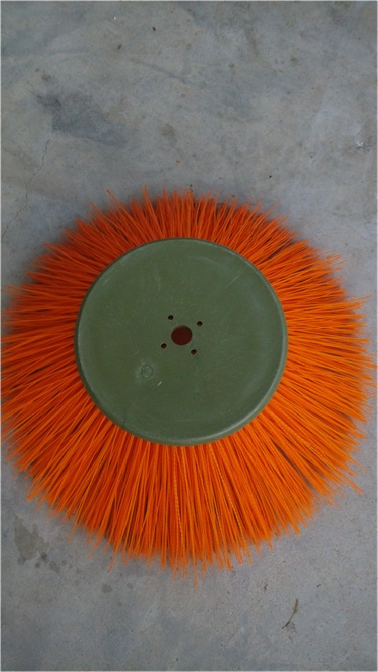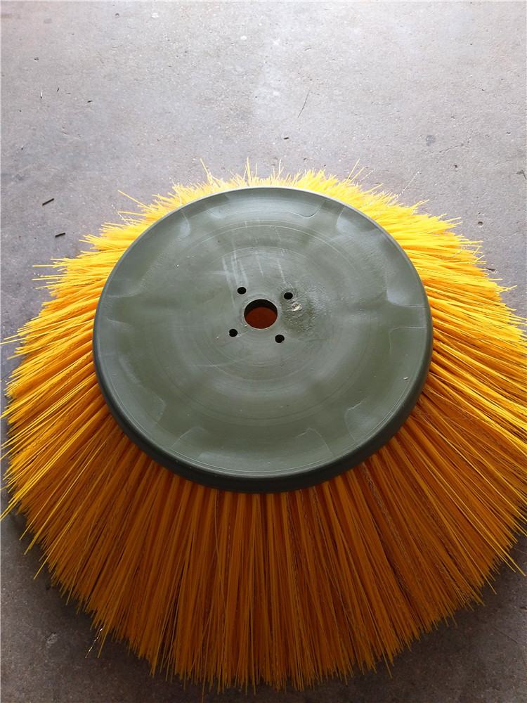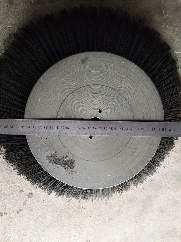 环卫刷:在切割好的PP圆盘上成一定角度(∠135°)钻孔,再用切好的扁钢丝或PP刷丝、尼龙丝对折后串插即可,刷子装在市政环卫车用于清扫街道清扫积雪等。
