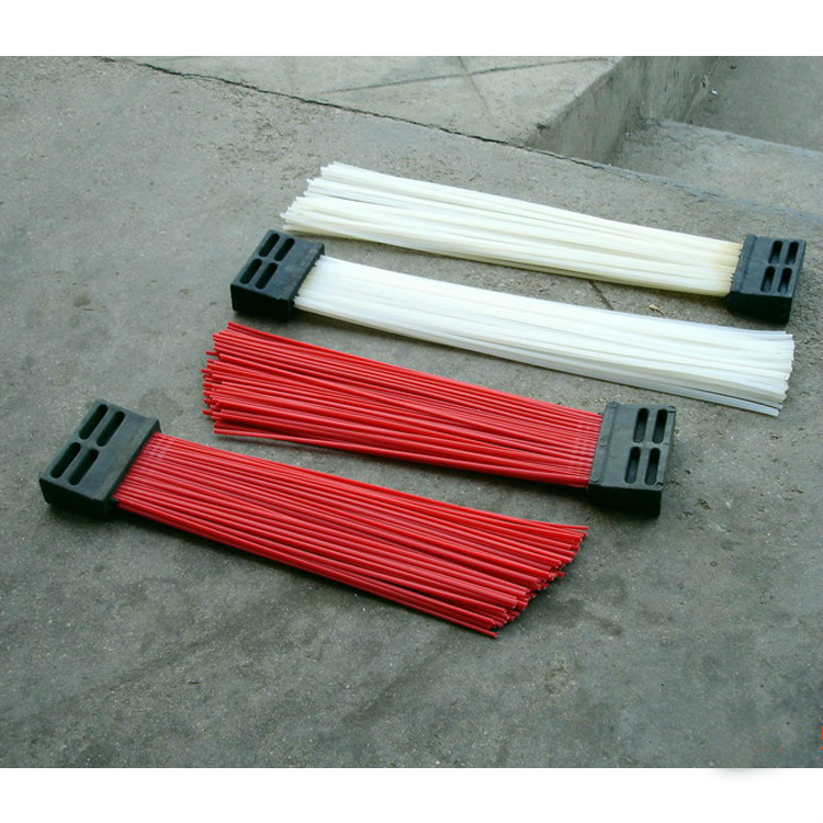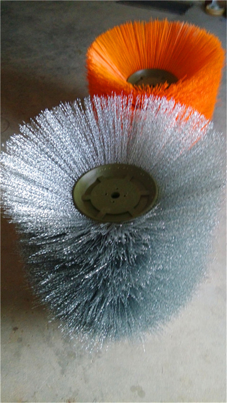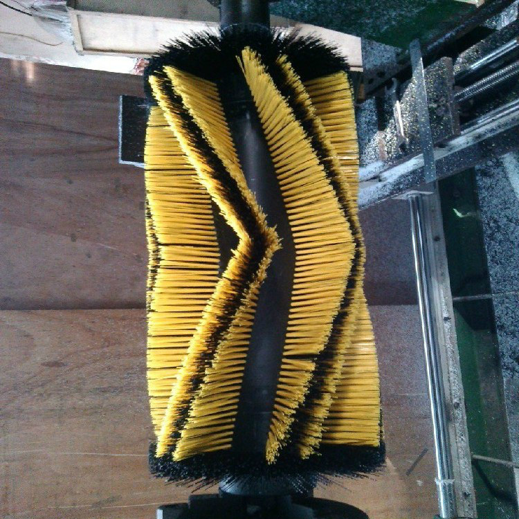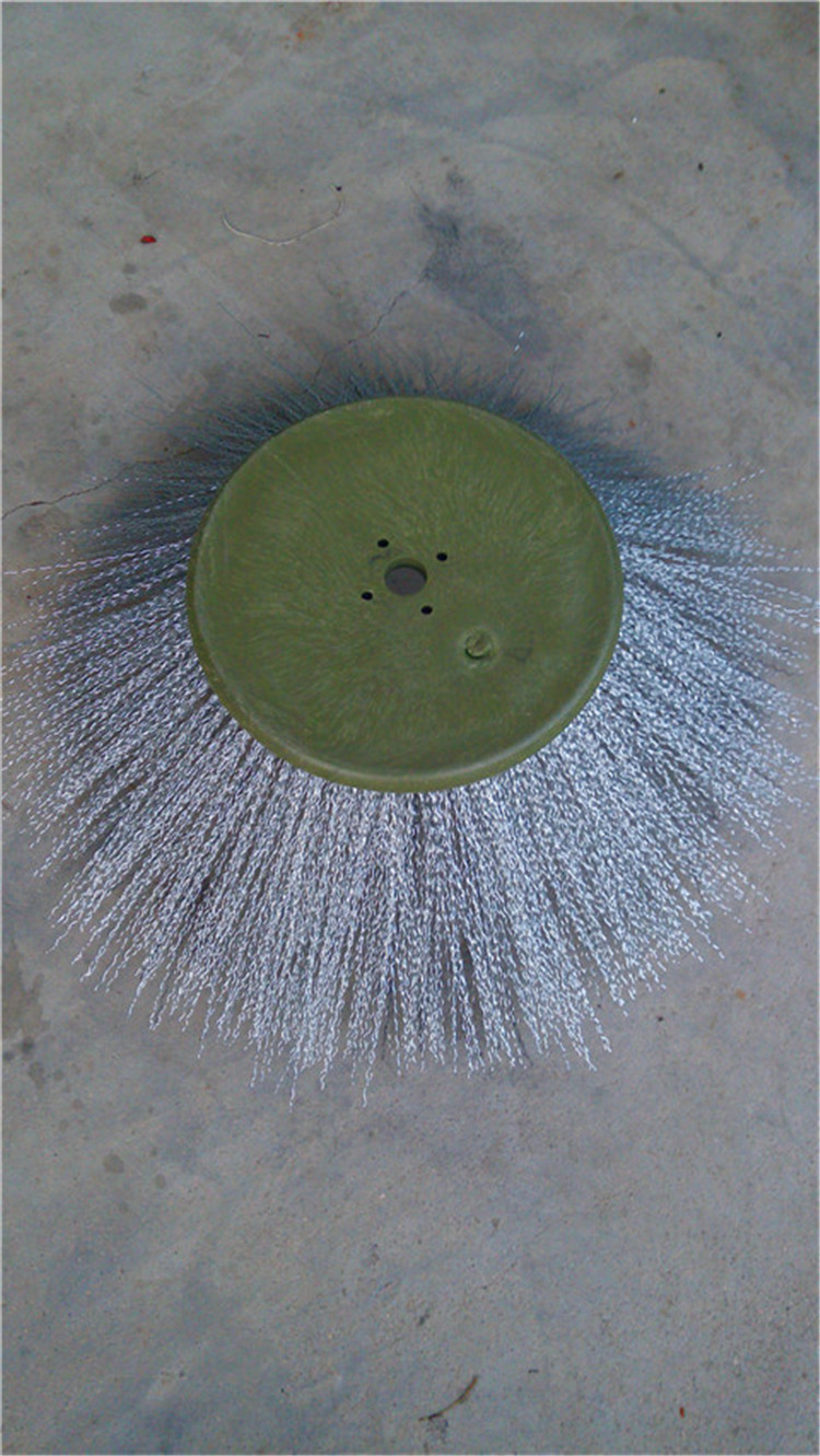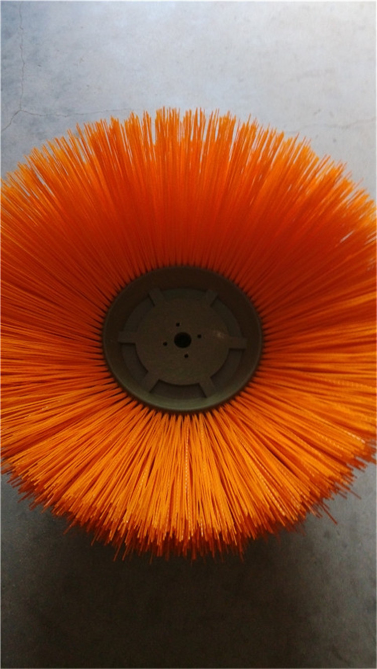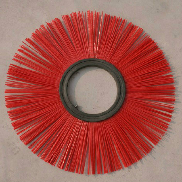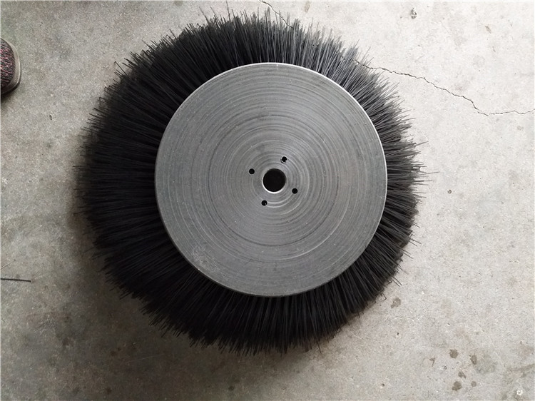 环卫刷:在切割好的PP圆盘上成一定角度(∠135°)钻孔,再用切好的扁钢丝或PP刷丝、尼龙丝对折后串插即可,刷子装在市政环卫车用于清扫街道清扫积雪等。