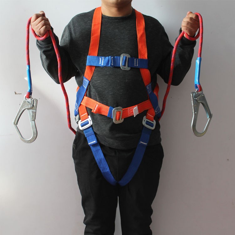 버퍼 안전 로프 암벽 등반 안전 로프 더블 후크 5 점 공중 작업 안전 벨트