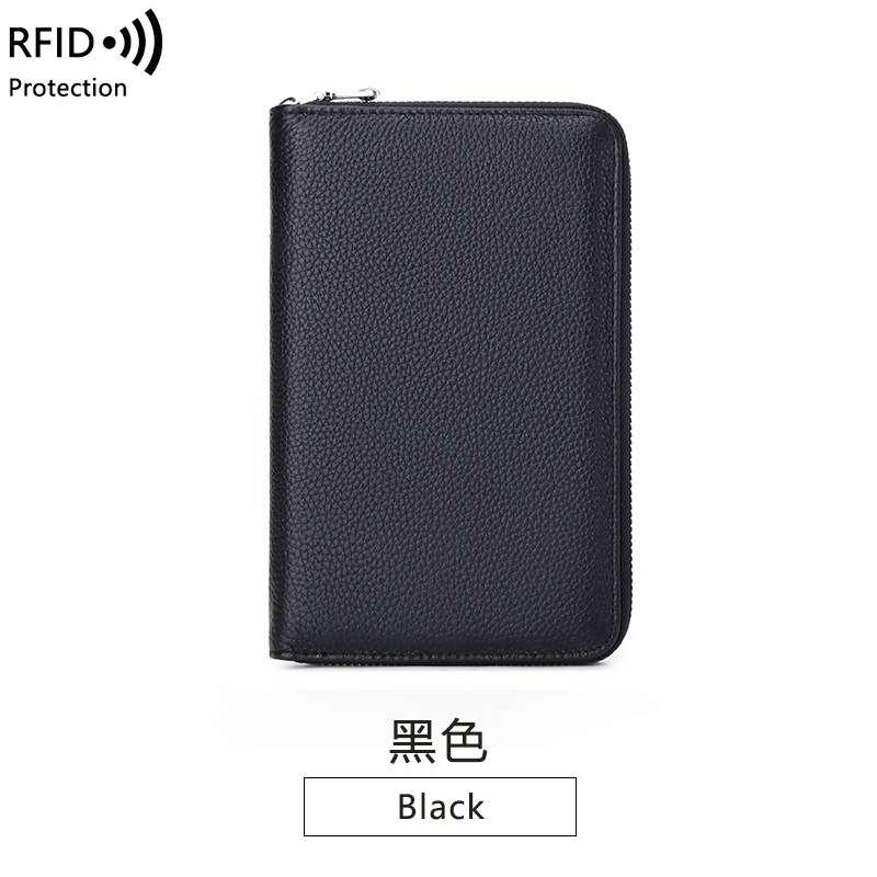 일본식 다기능 책 가죽 책 탑 레이어 가죽 지퍼 핸드 북 RIFD 통장 여권 지갑