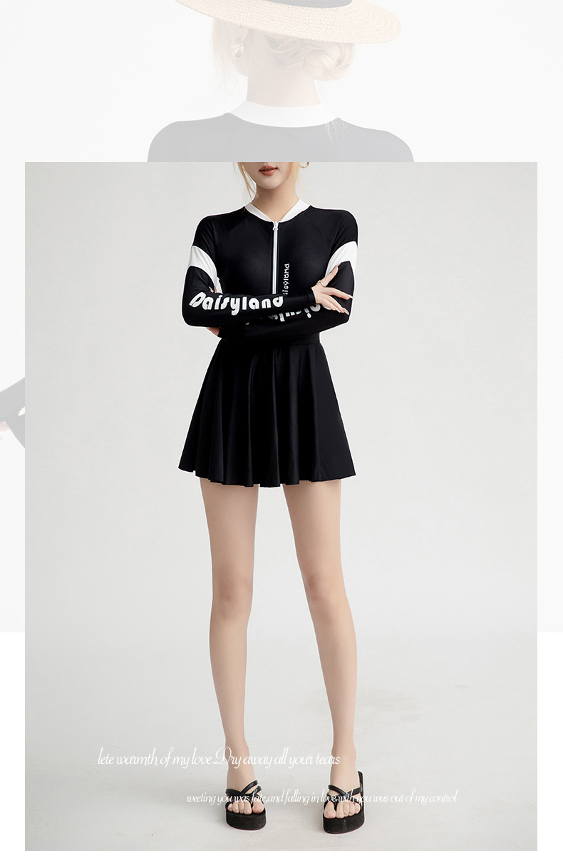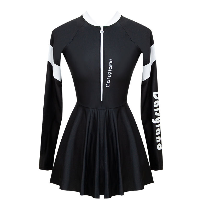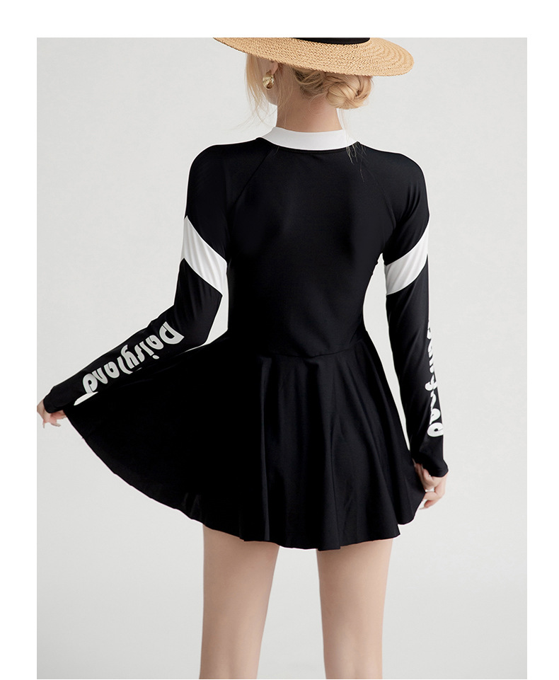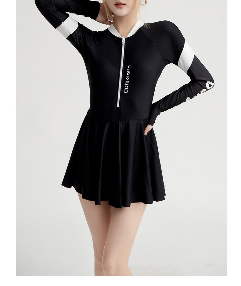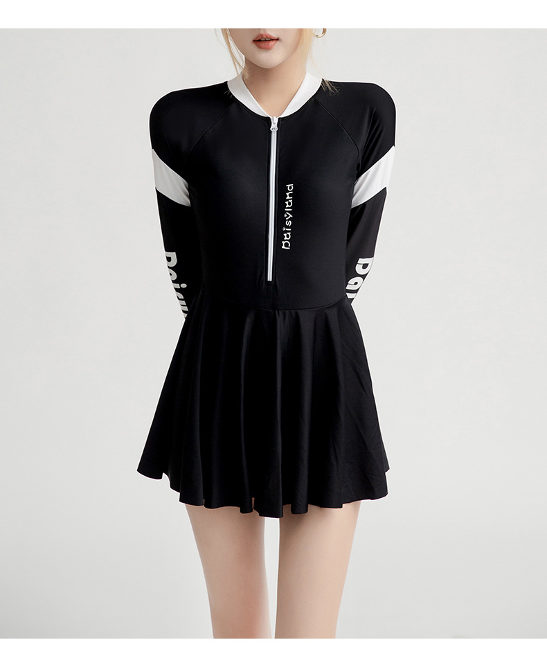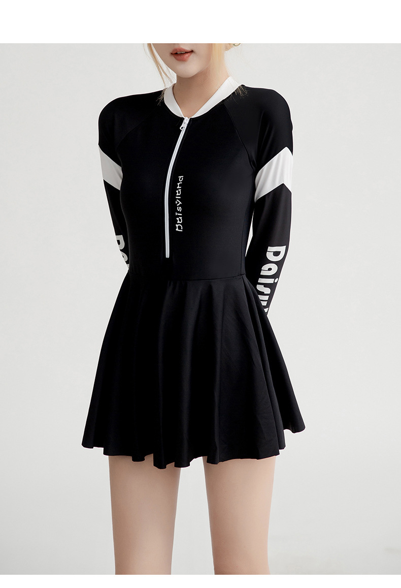 새로운 스포츠 트레이닝 플러스 사이즈 수영복 여성용 긴팔 스커트 스타일 보수적 인 원피스 배꼽 커버 슬리밍 자외선 차단제 온천 수영복
