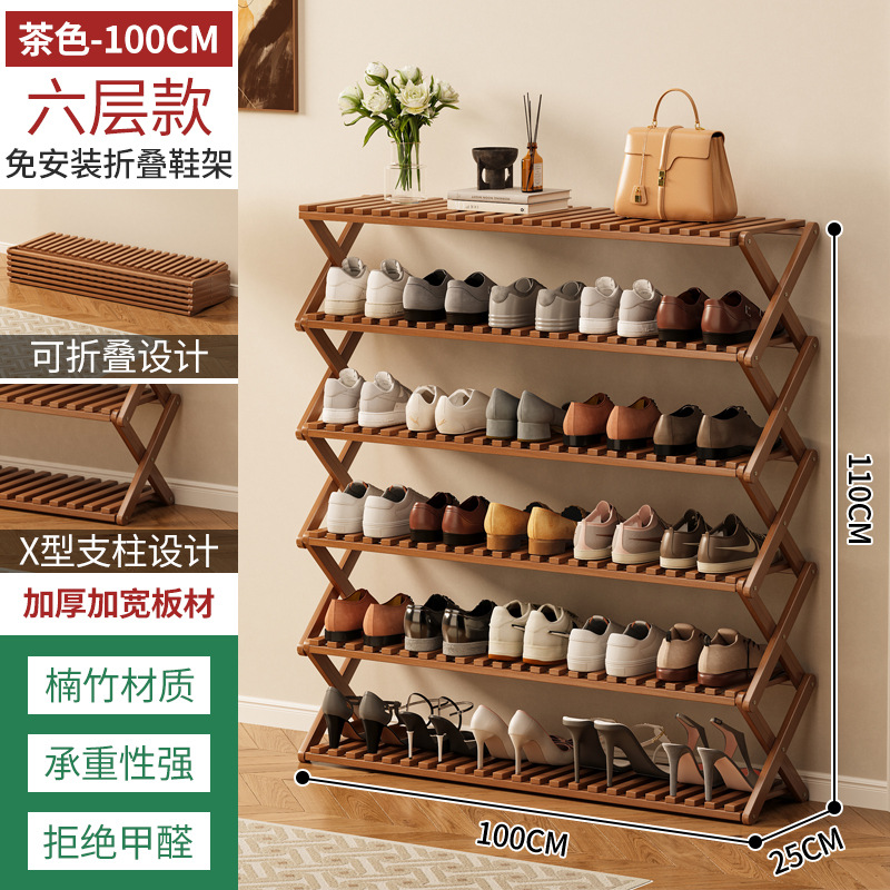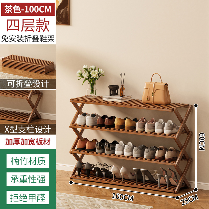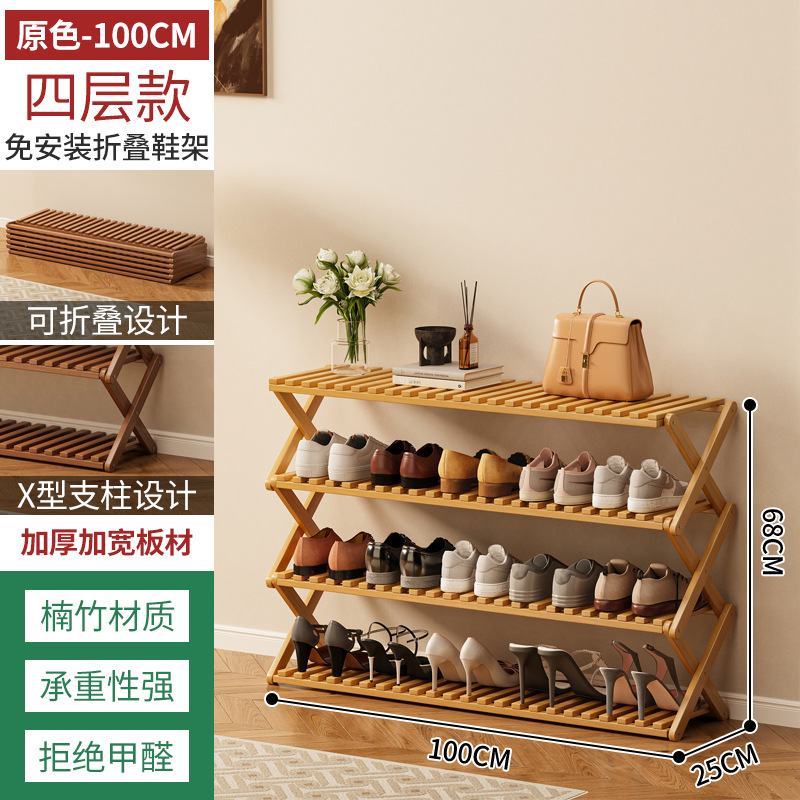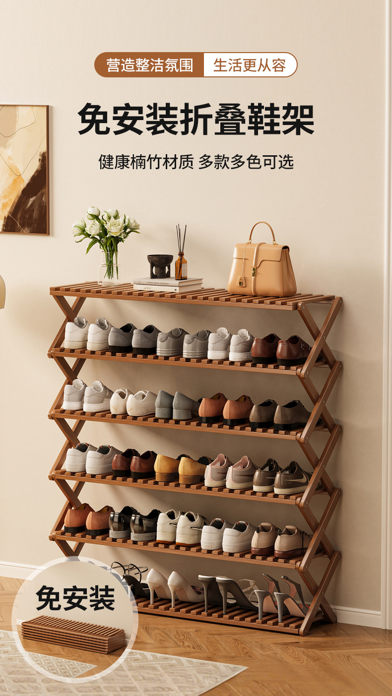신발장 설치가 필요 없고 쌓을 수 있는 간단한 다층 가정용 경제적인 선반 기숙사 문 수납 선반 대나무 신발장스토어 가기