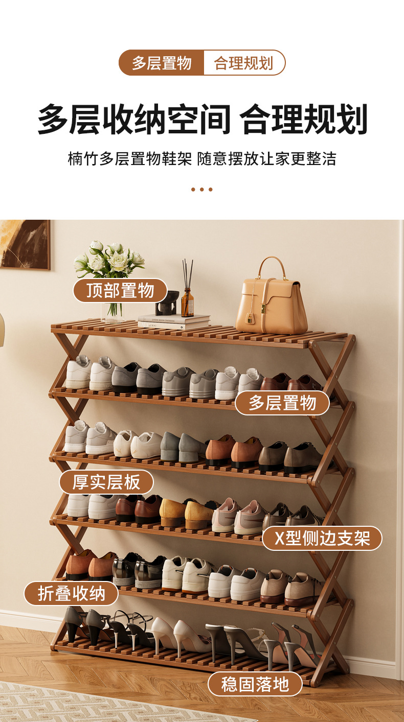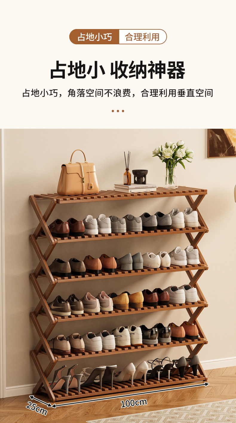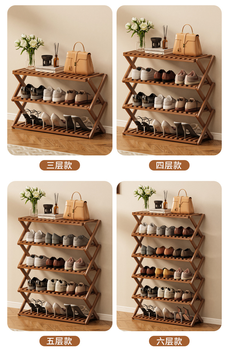 신발장 설치가 필요 없고 쌓을 수 있는 간단한 다층 가정용 경제적인 선반 기숙사 문 수납 선반 대나무 신발장스토어 가기