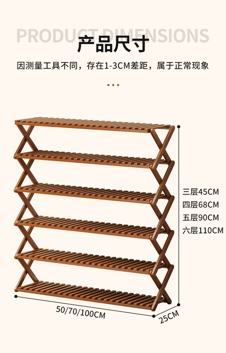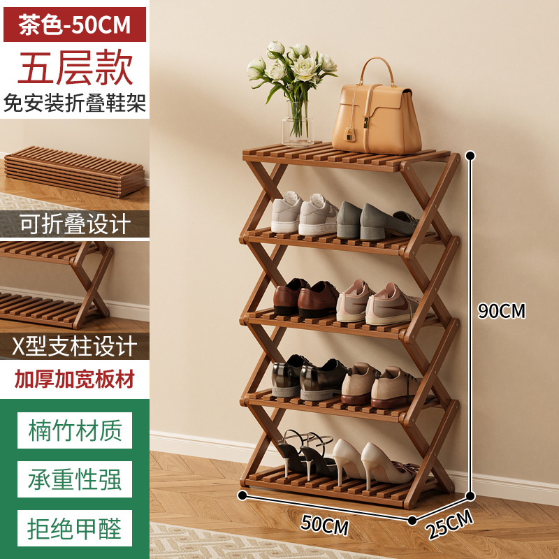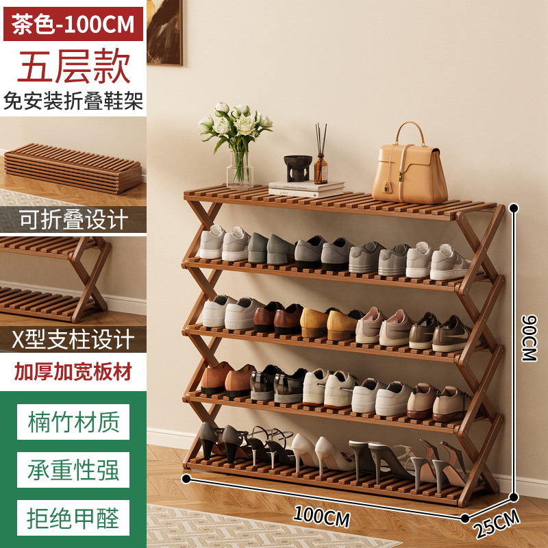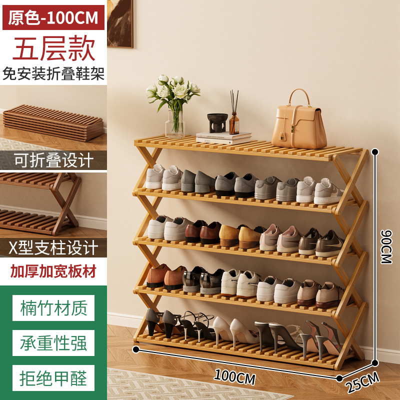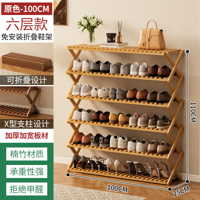 신발장 설치가 필요 없고 쌓을 수 있는 간단한 다층 가정용 경제적인 선반 기숙사 문 수납 선반 대나무 신발장