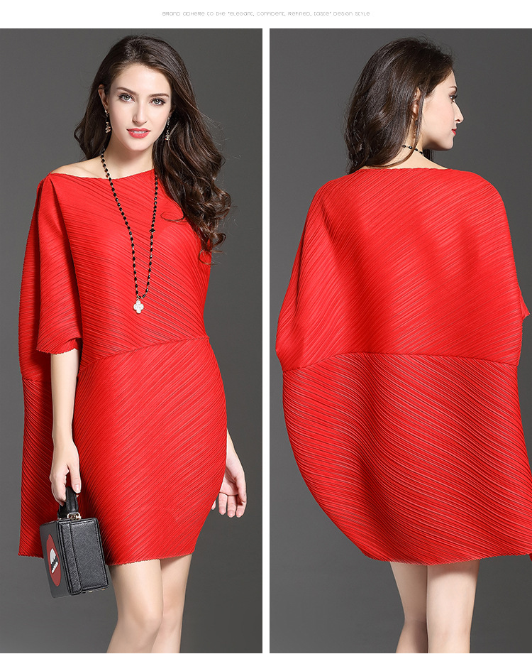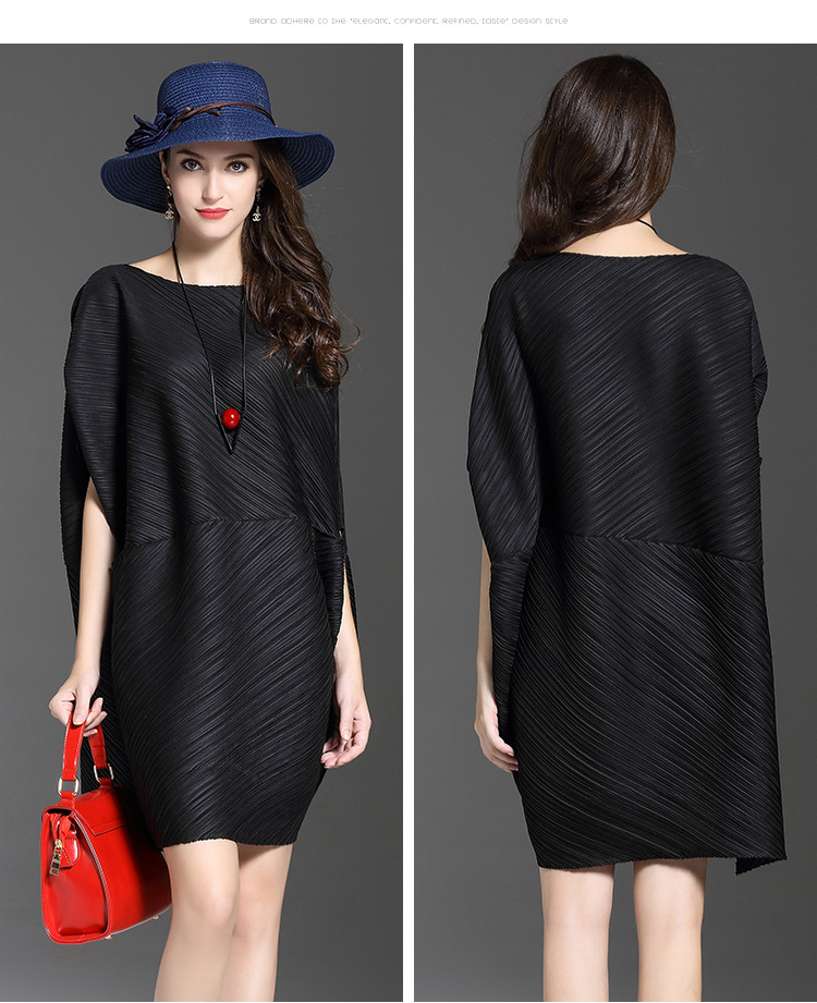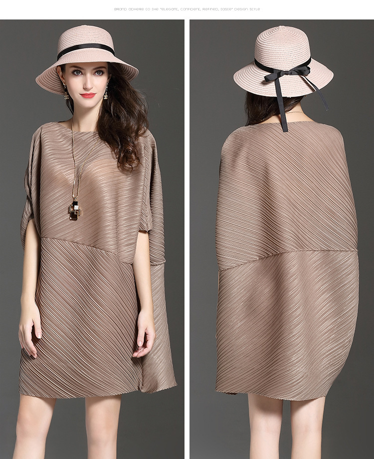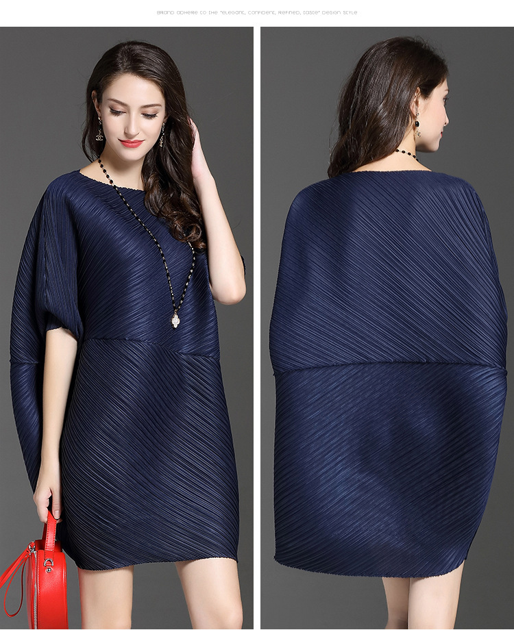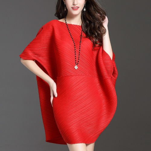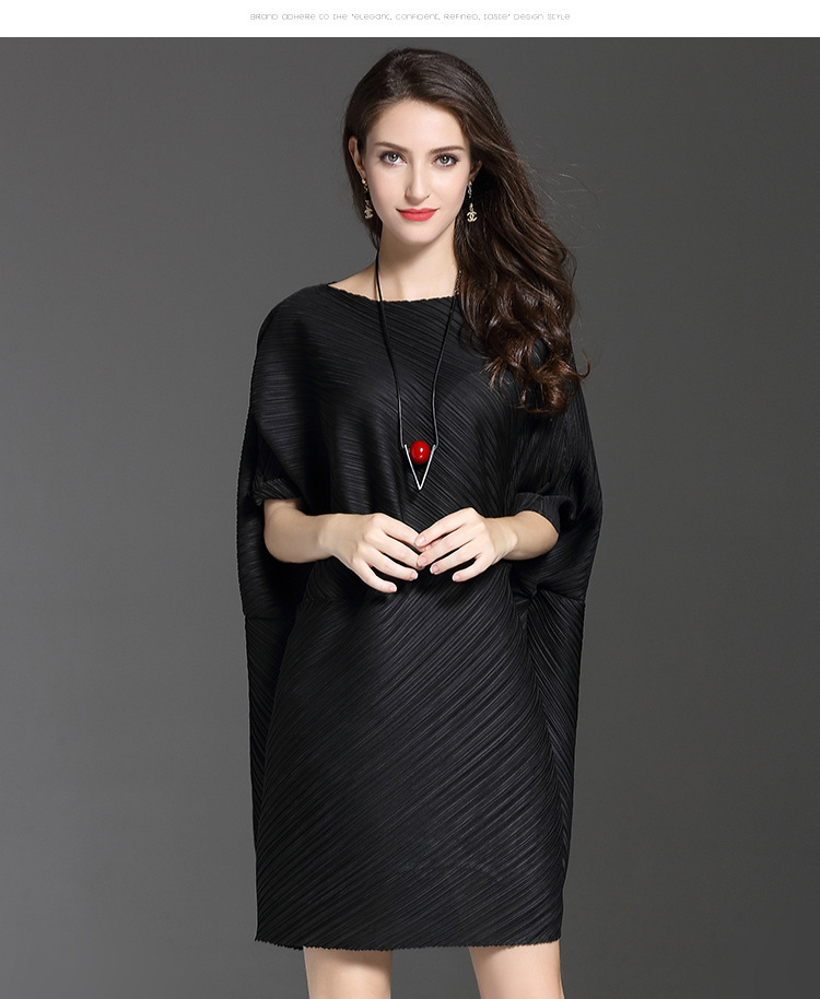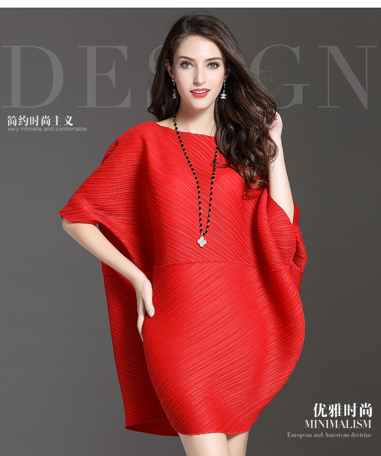 유럽 역 2025 새로운 대형 느슨한 유럽과 미국의 패션 여성 박쥐 슬리브 하우스 주름 드레스 가을