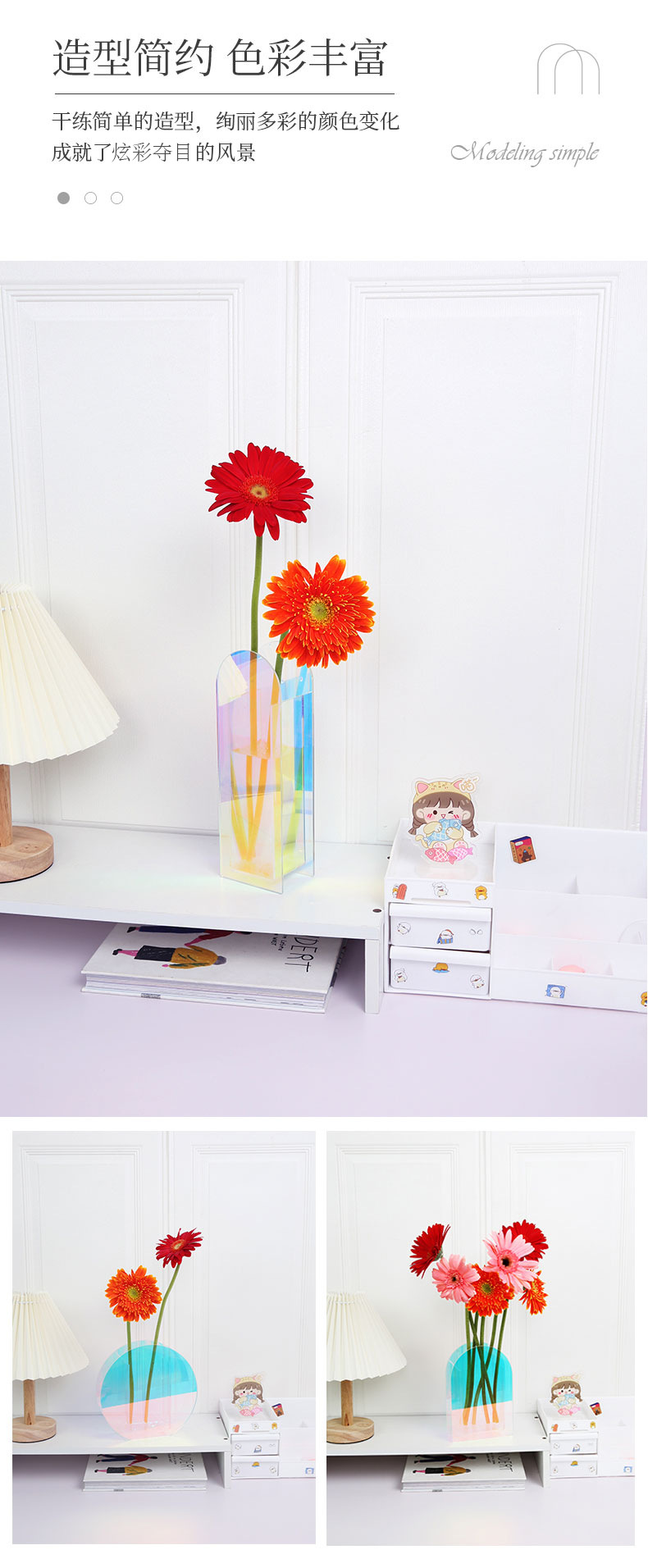 크로스 보더 핫 메이드 아크릴 다채로운 꽃병 현대 빛 럭셔리 홈 수경 꽃 배열 간단한 북유럽 스타일 거실 장식품스토어 가기