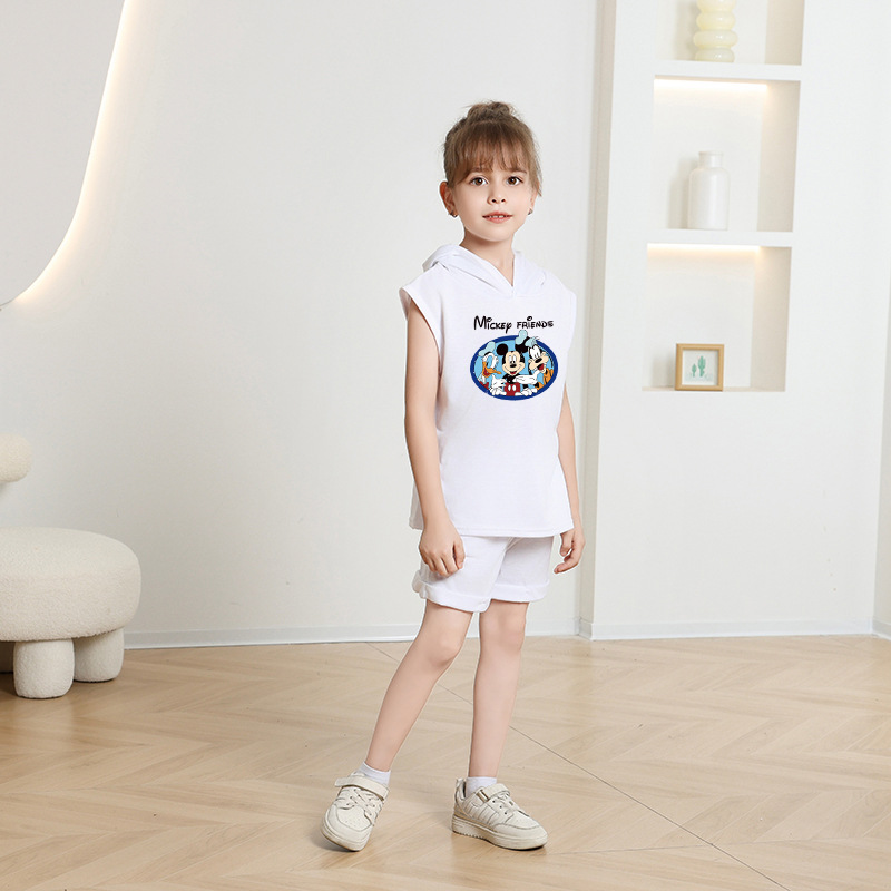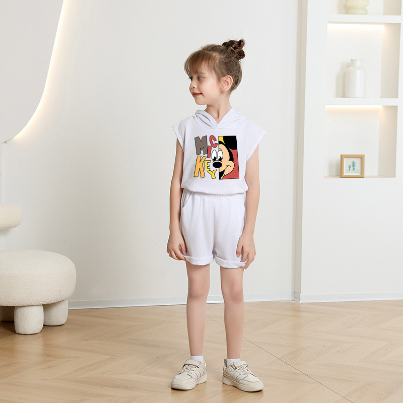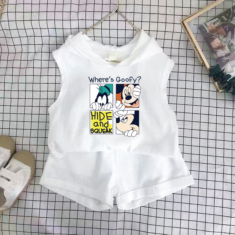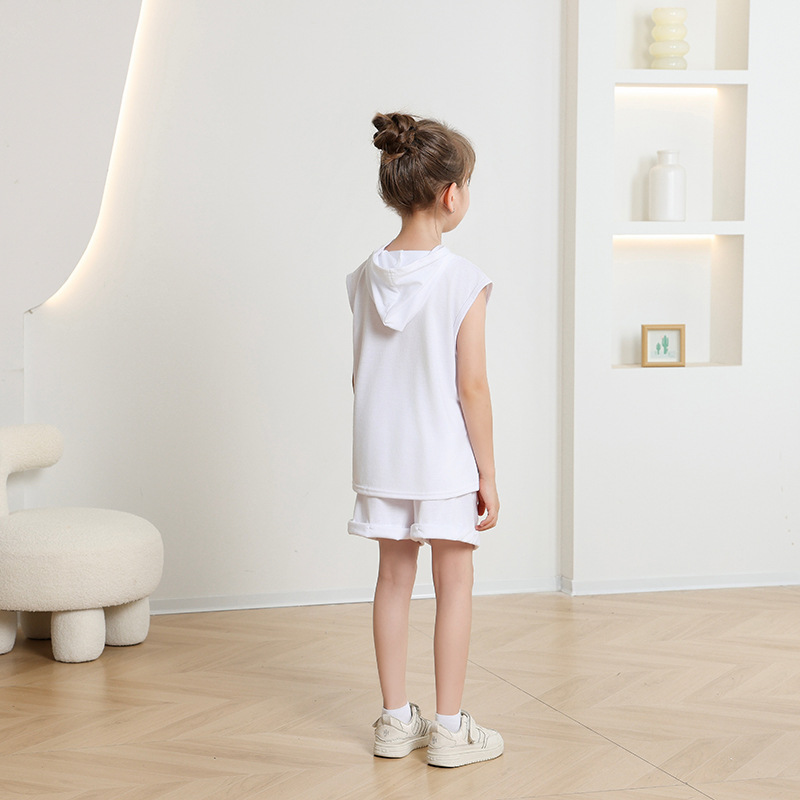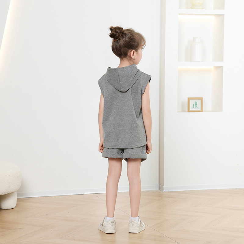 어린이 조끼 후드 세트 여름 새 반바지 소년과 소녀 세트 아기 세련된 투피스 코튼 세트