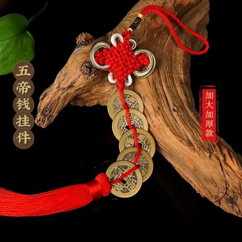 5 개의 황제 돈 진짜 천연 조롱박 펜던트 열기 길조 매듭 문 문 해결 문 압력 임계 값 청동 돈