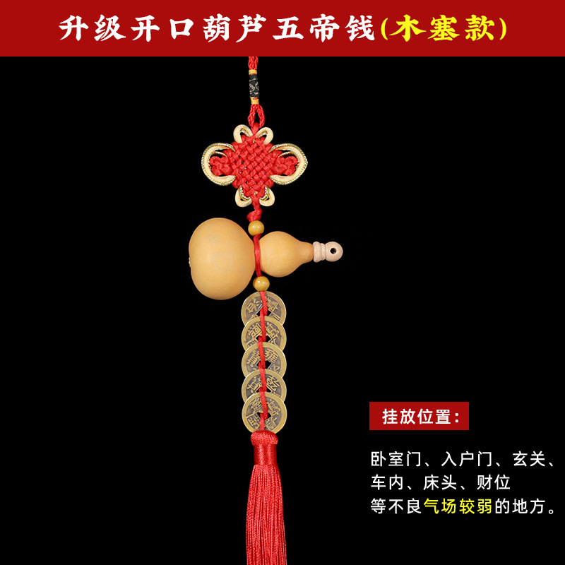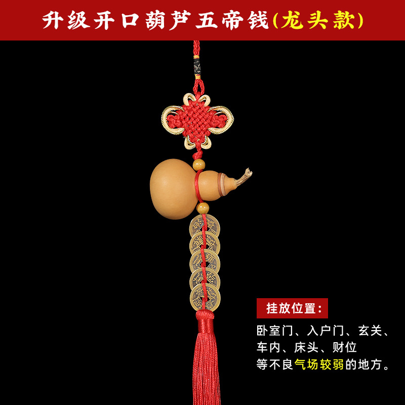 5 개의 황제 돈 진짜 천연 조롱박 펜던트 열기 길조 매듭 문 문 해결 문 압력 임계 값 청동 돈스토어 가기