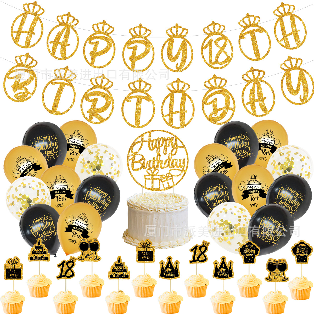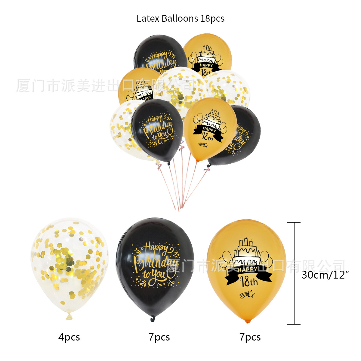 18个乳胶气球(黑色6+金色6+金色亮片纸屑6)