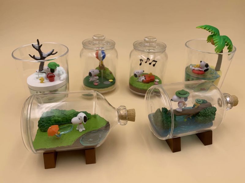Q版6款 史努比和糊涂塌客快乐微缩景观瓶情景 公仔 摆件 盒蛋手办