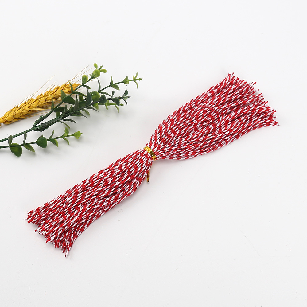 25cm 빨간색과 흰색 면끈 50-100개 태그용 특수끈 수제 재료 크리스마스 선물 장식 태그 걸이끈