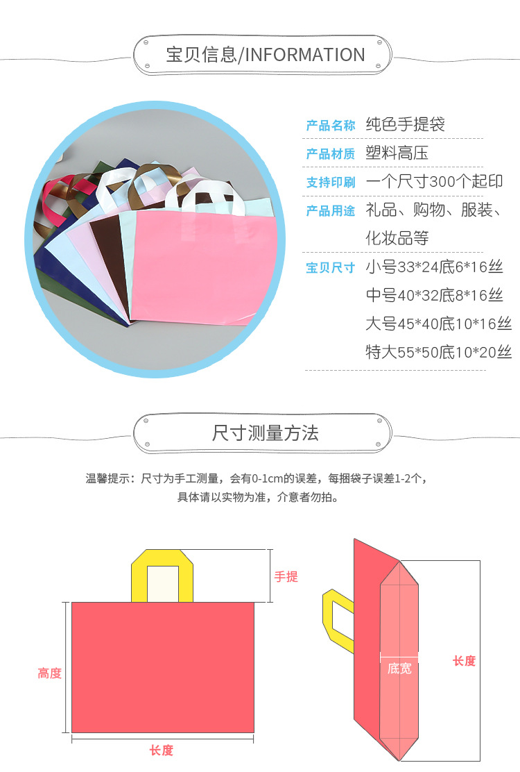 의류 매장 가방 투명 비닐 봉투 고급 선물 여성 의류 아동복 매장 휴대용 가방 의류 포장 도매