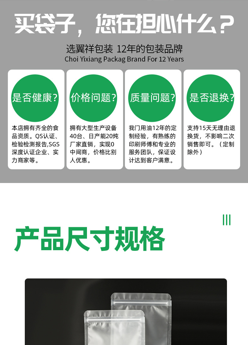 因为我们有12年的食品包装生产经验何品质技术沉淀,所以我们的工厂更值得广大群体的信赖