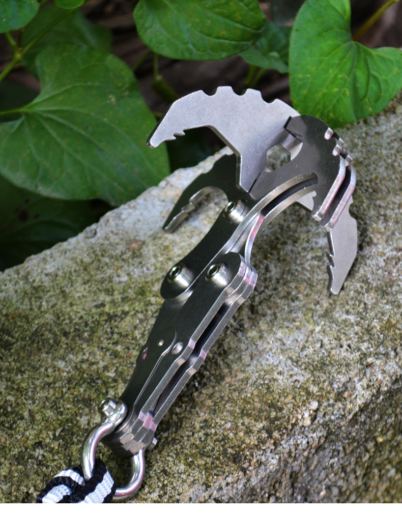 用途:1、野外跌落物体抓取;2、旅行途中汽车牵引救援;3、登山钩;4、多用工具。