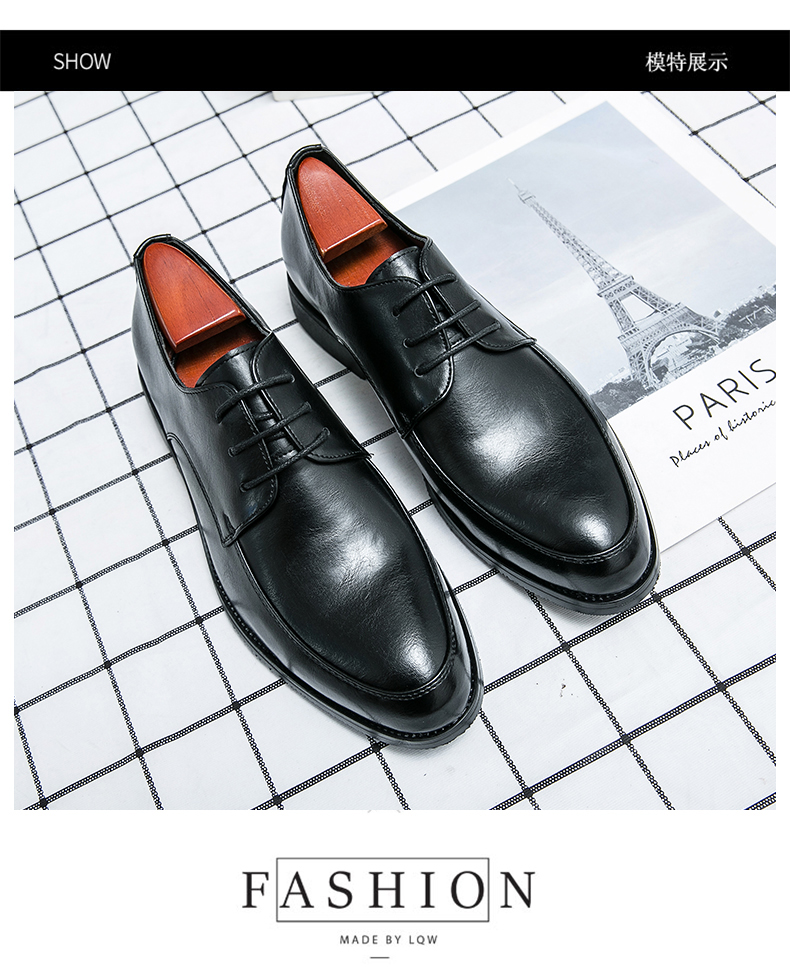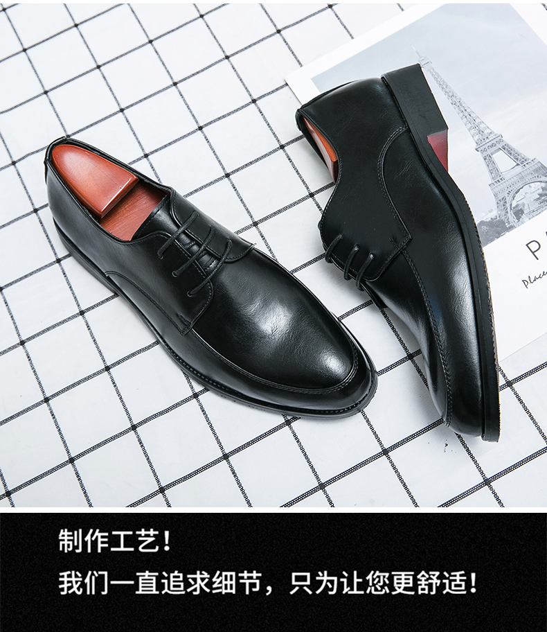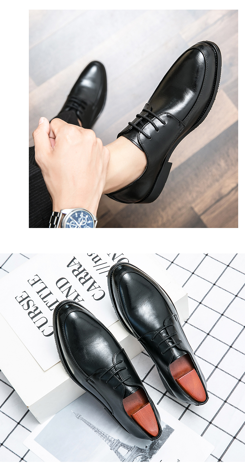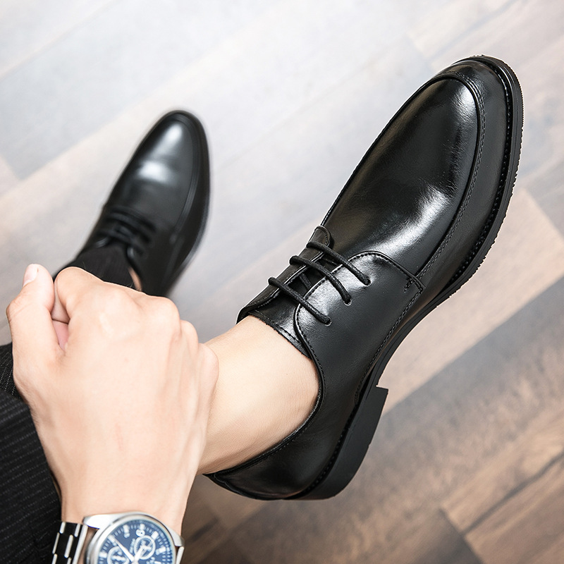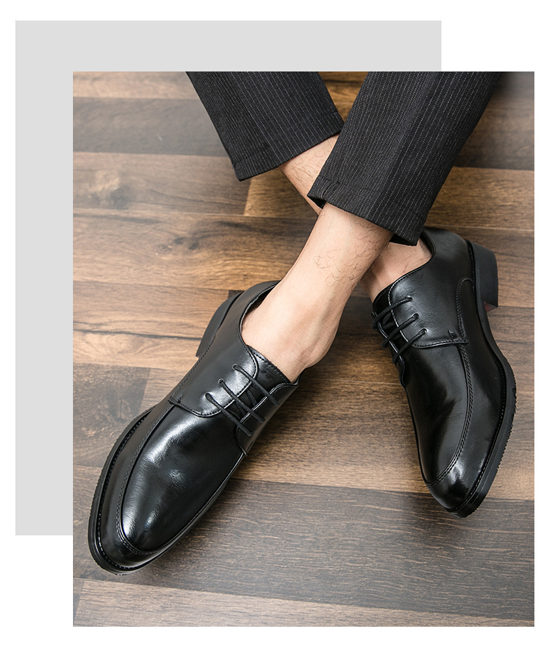 가을 2021 영국 스타일 캐주얼 모든 매치 슈즈 블랙 남성 비즈니스 스타일리스트 내부 높이 6cm 가죽 신발스토어 가기