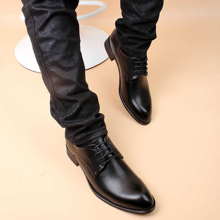 뾰족한 발가락 가죽 신발 남자의 한국 스타일 영국 유행 신발 남자의 웨딩 가죽 신발 헤어 스타일리스트 야간 상점 작업 신발 블랙스토어 가기