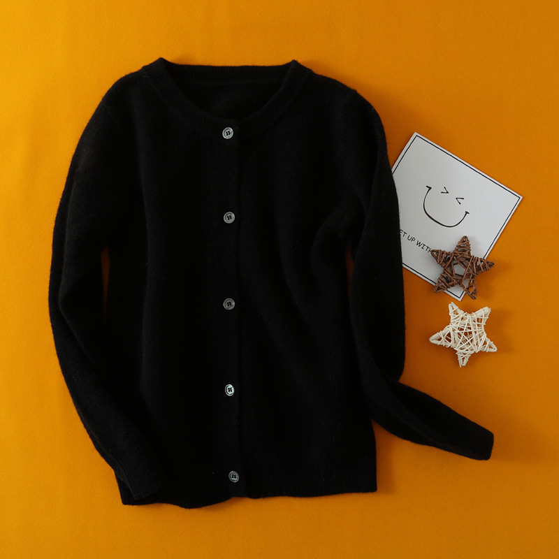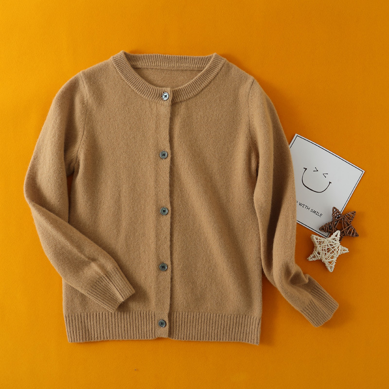 어린이 캐시미어 스웨터 가을과 겨울 남아 니트 베이스 셔츠 여아 캐주얼 라운드 넥 단색 두꺼운 스웨터 울 가디건