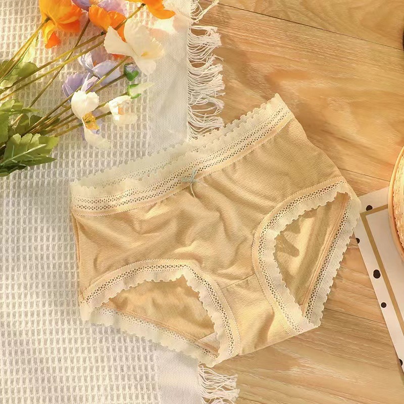 앤팅 루 일본식 밀크 레이스 레이스 섹시 한 조심 기계 원활한 순면 가랑이 여성용 미드 웨이스트 브리프