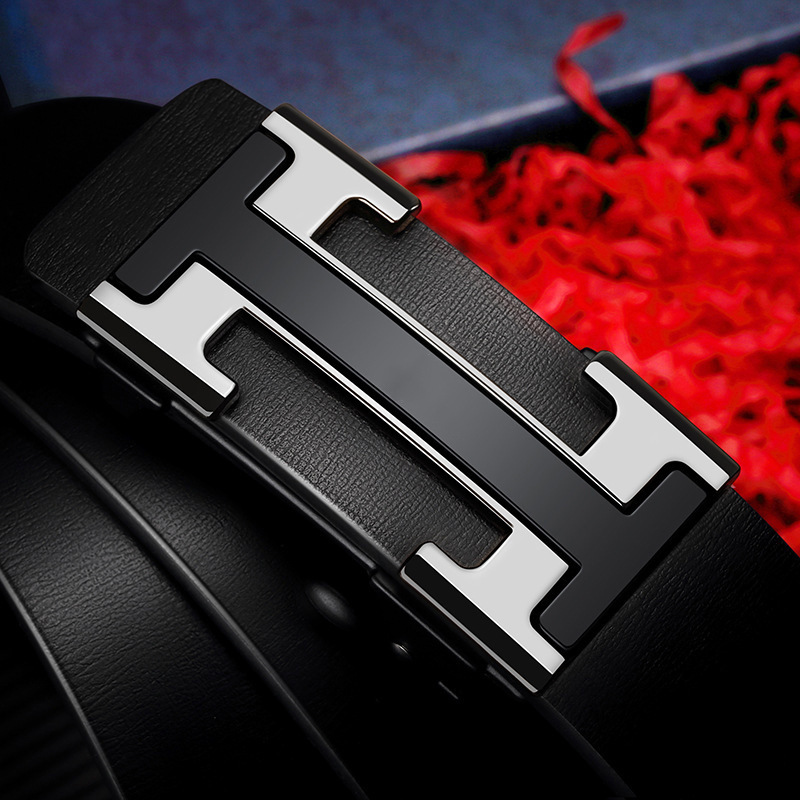 새로운 투슬리스 자동 버클 벨트 남성용 내부 착용 벨트 패션 화이트 착용 비즈니스 중년 및 노인 바지 라이브 헤어