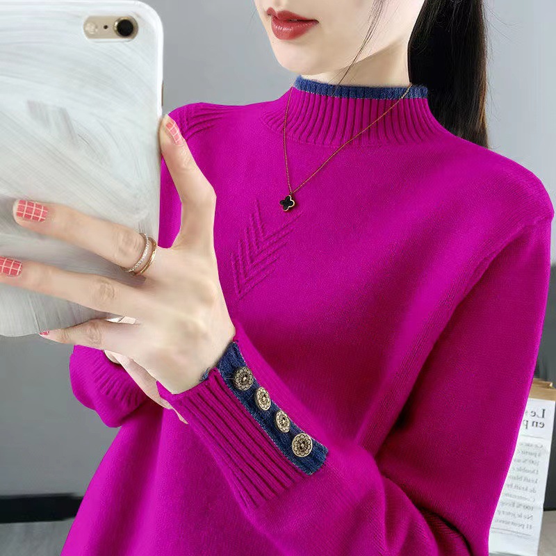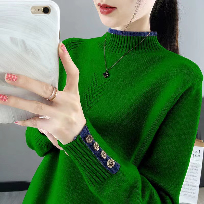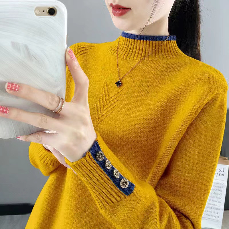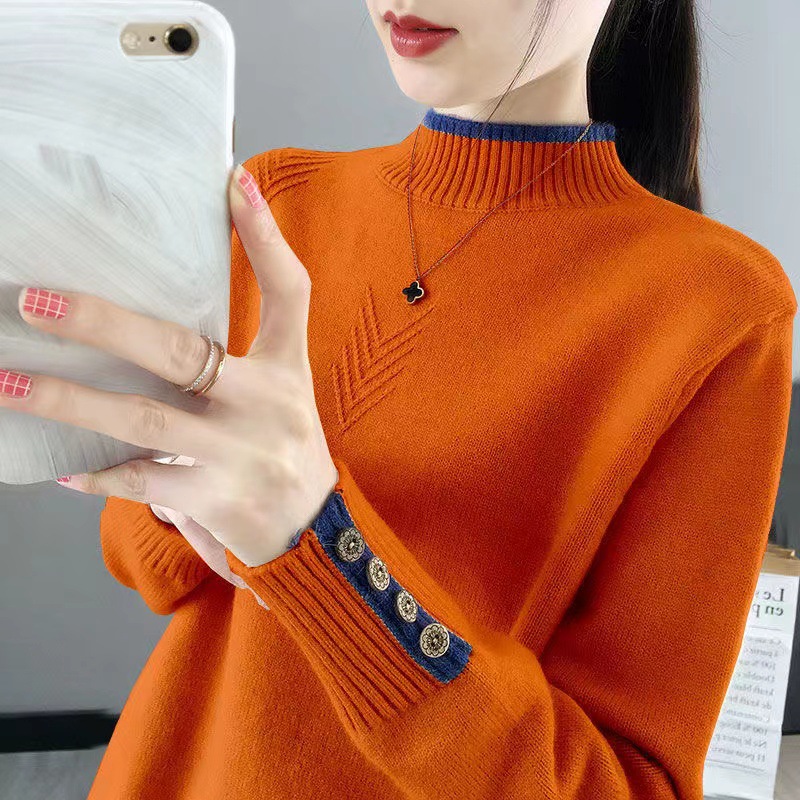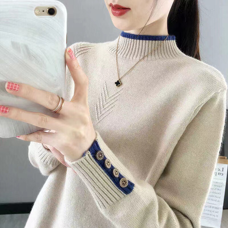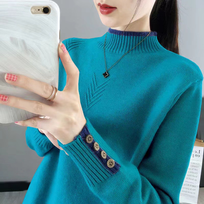 2022 년 가을과 겨울 새 스웨터 여성 하프 터틀넥 슬림베이스 긴팔 스웨터 여성용 솔리드 컬러 두껍게