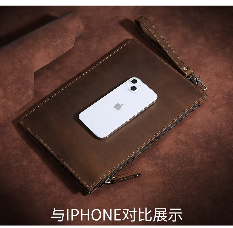 빈티지 정품 가죽 남성용 가방 미친 말 가죽 스트리트 패션 클러치 백 남성용 핸드백 파일 백 비즈니스 핸드백 유럽과 미국스토어 가기