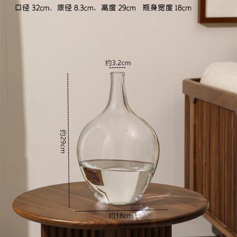 새로운 큰 배꼽 꽃병 도매 패션 북유럽 가정용 거실 발코니 꽃 장식 투명 유리 꽃병