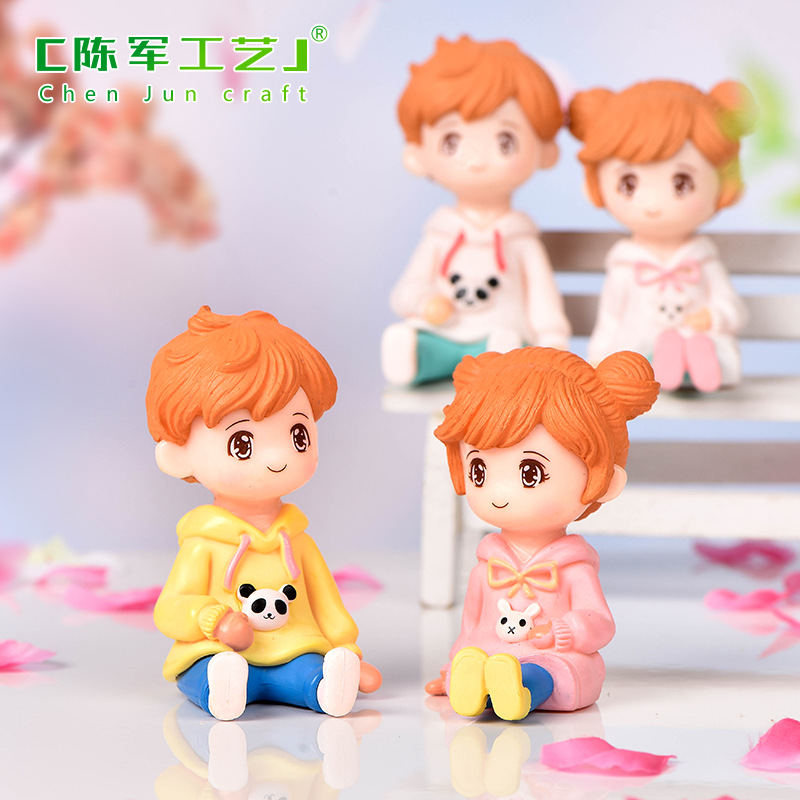 새로운 스타일 스웨터 커플 마이크로 풍경 데스크탑 DIY 케이크 장식 액세서리 스웨터 소녀 하트 커플 플라스틱 장식품