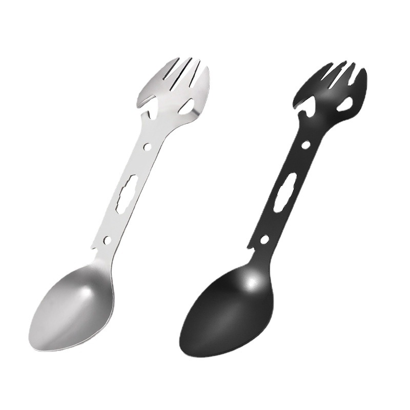 수미 야외 스테인레스 스틸 야외 다기능 포크 스푼 식기 스푼 캠핑 조리기구 병따개 렌치 작살
