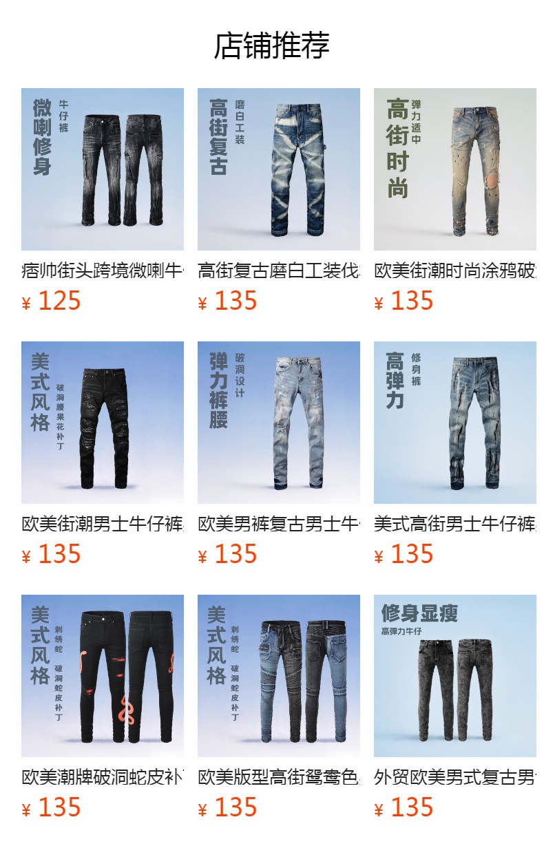 패셔너블하고 캐주얼한 슬림핏 멋진 남성용 데님 팬츠, PU 별 패치 스티치 트렌디한 아메리칸 하이 스트리트 스타일 데미지드 스타 디자인스토어 가기