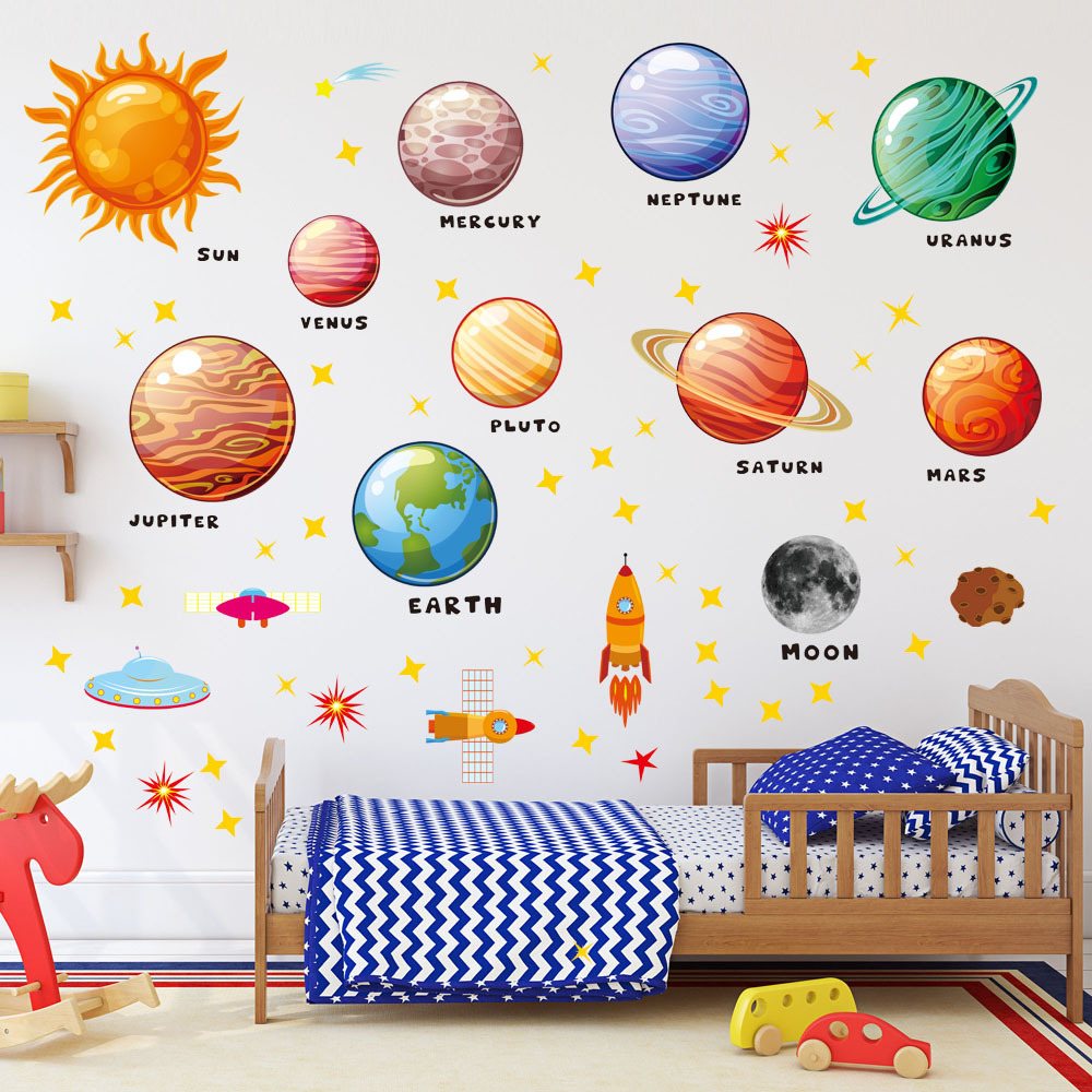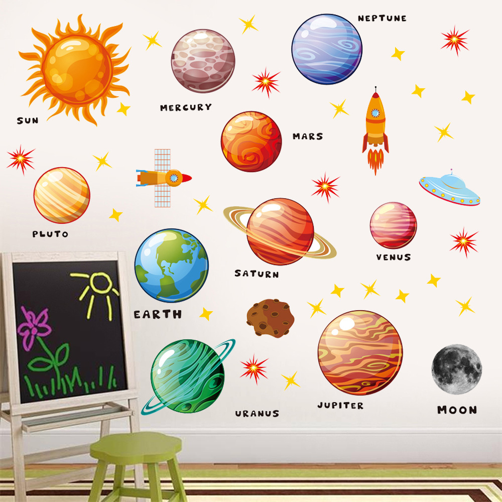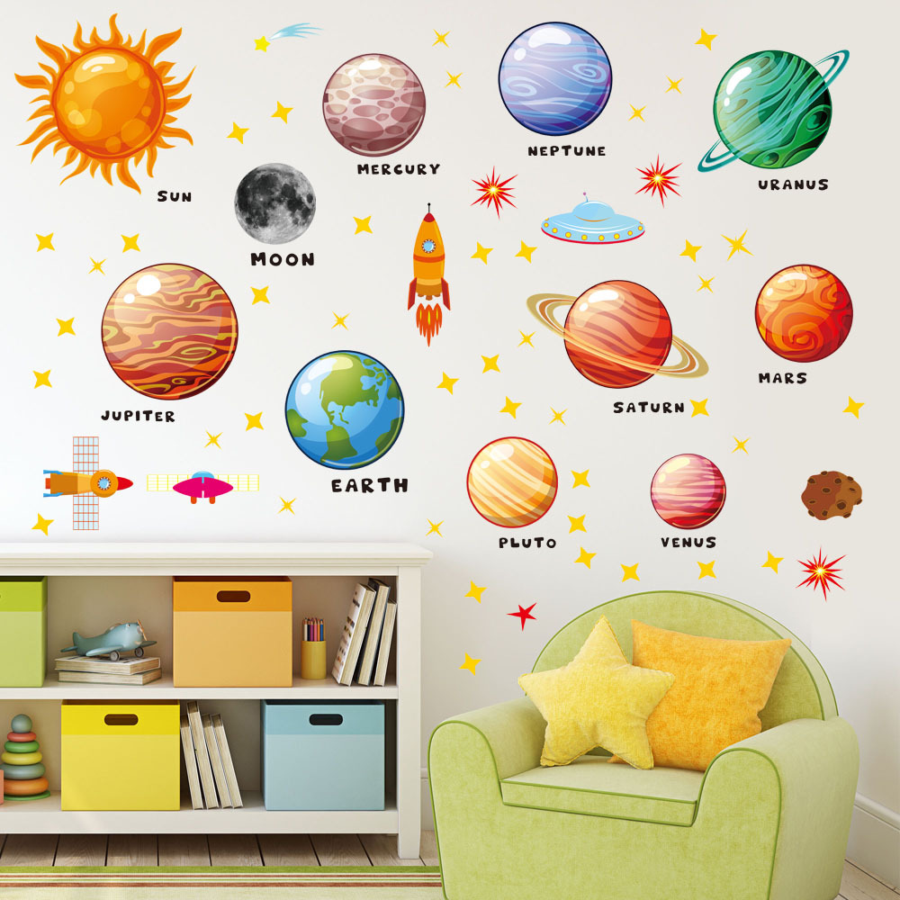 9 행성 우주 비행사 로켓 UFO 운석 우주 행성 테마 스티커 어린이 방 방수 자체 접착 벽 스티커