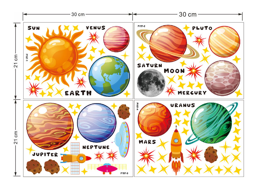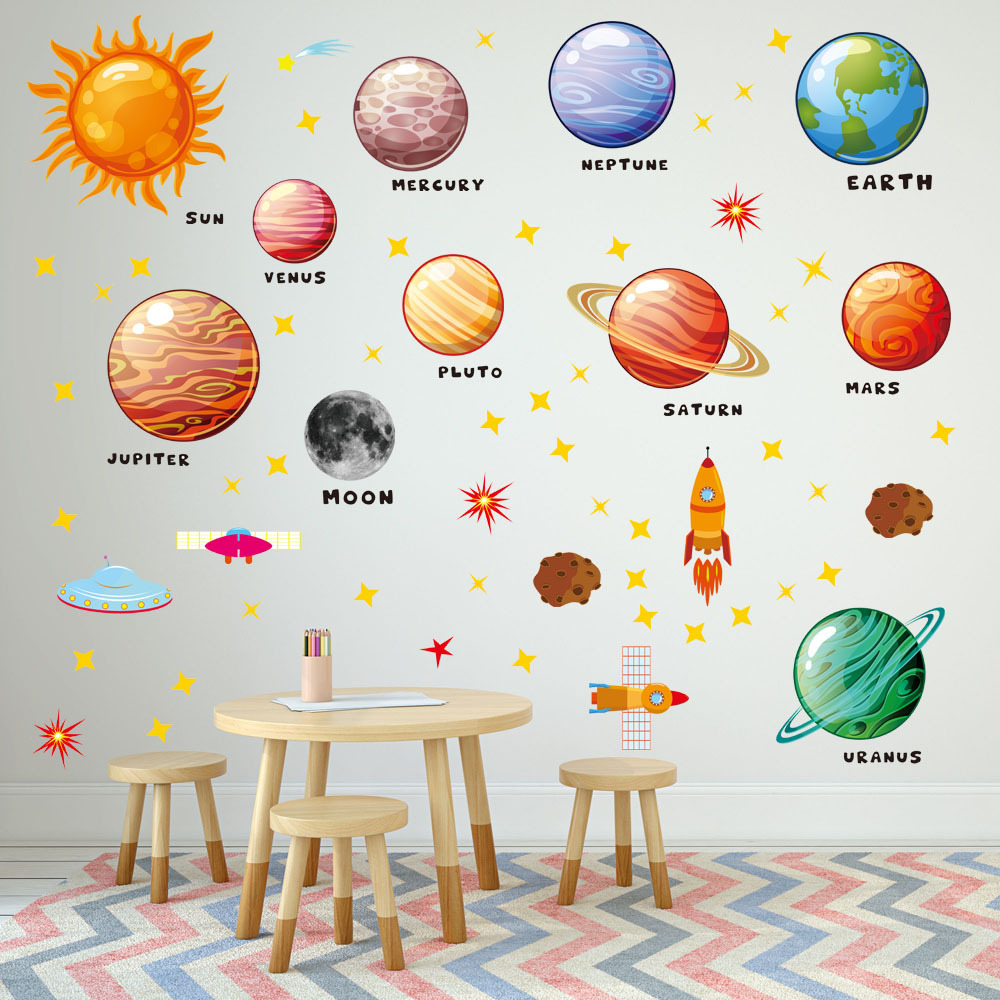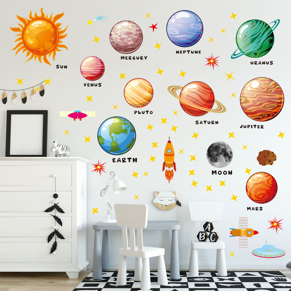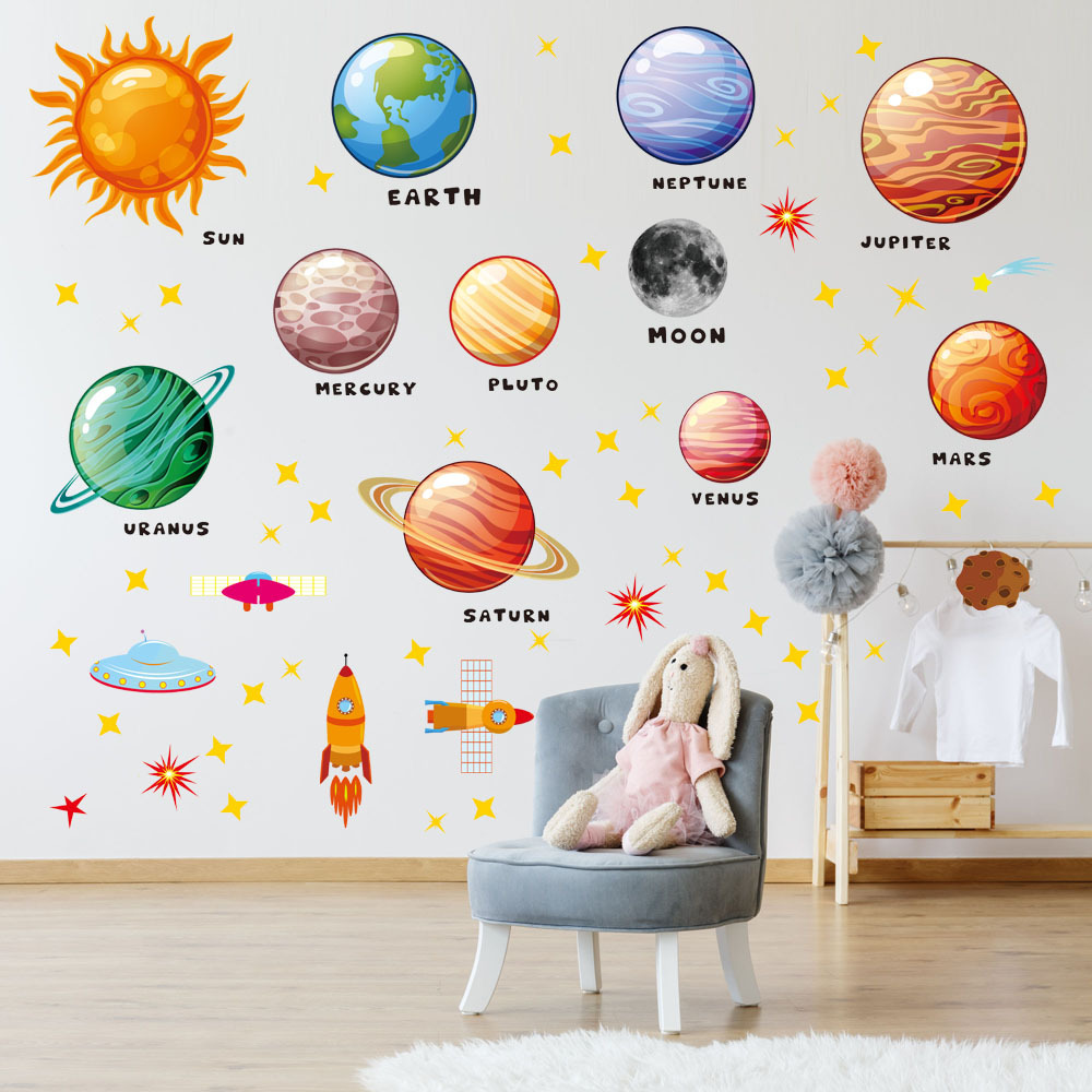 9 행성 우주 비행사 로켓 UFO 운석 우주 행성 테마 스티커 어린이 방 방수 자체 접착 벽 스티커