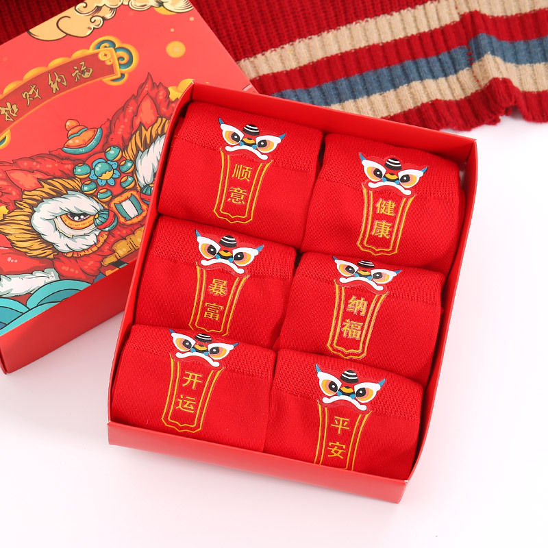 여성과 남성을 위한 빨간 양말 빨간 양말 선물 상자 연간 양말 한국식 무색 빨간 양말 가을과 겨울 중간 길이 양말 시즌 핫 스탬핑 새로운 국가 패션스토어 가기