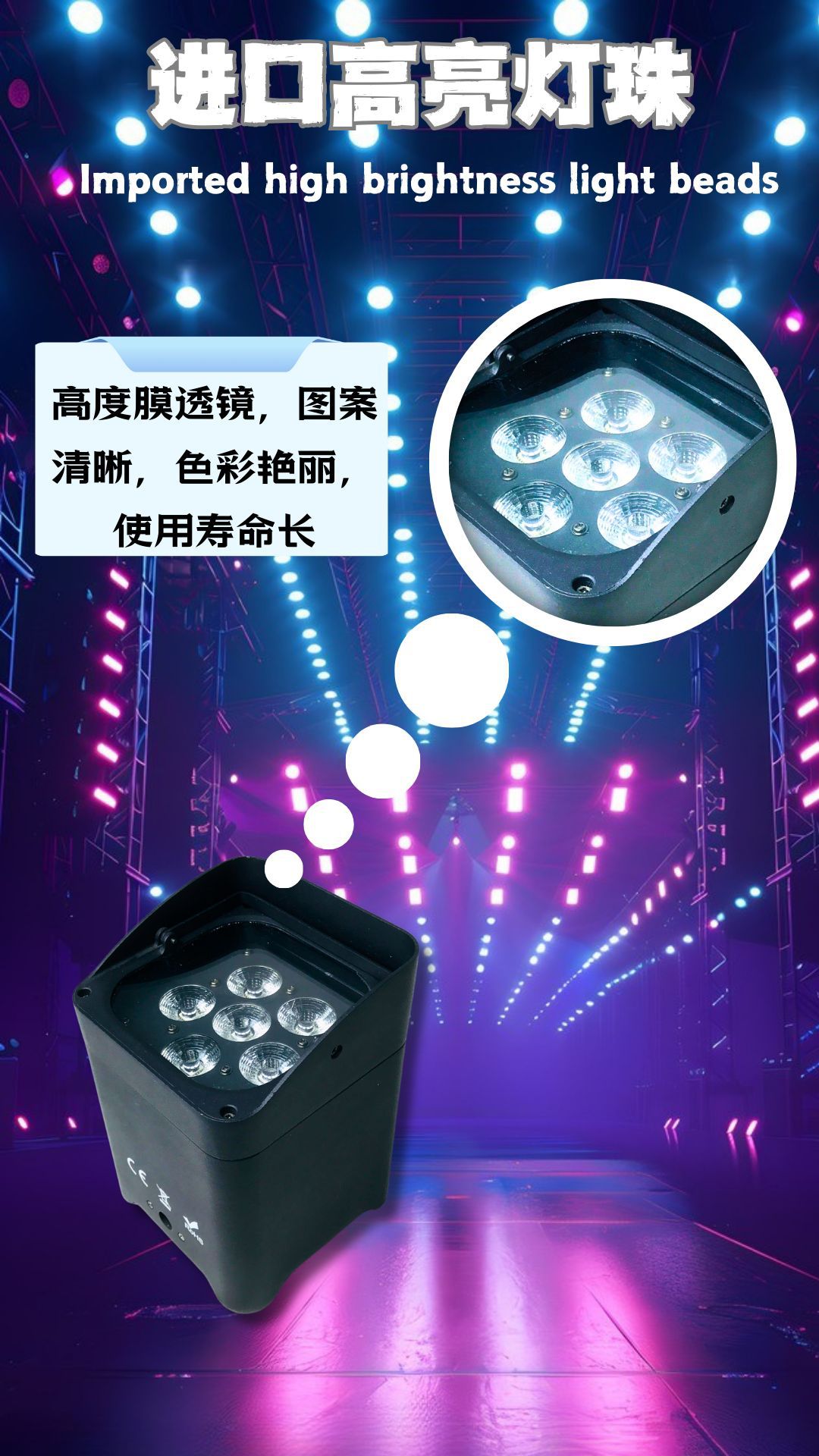 光源:6颗18W六合一超亮度leds,6-10万小时寿命