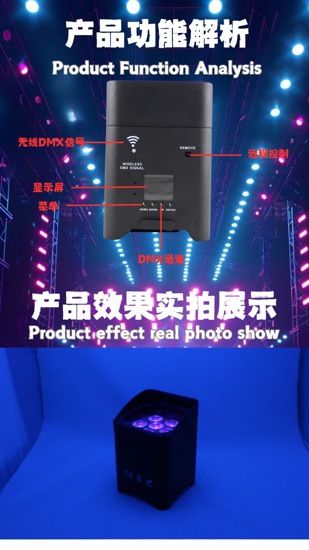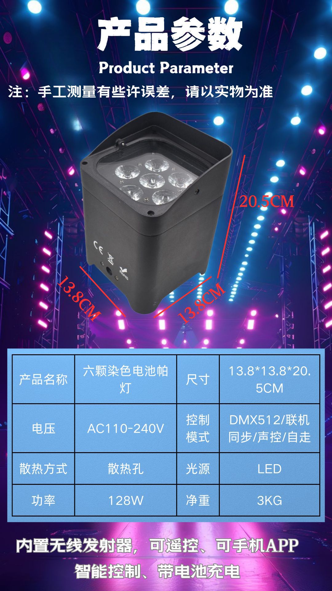 控制模式:DMX512,联机同步,声控,自走