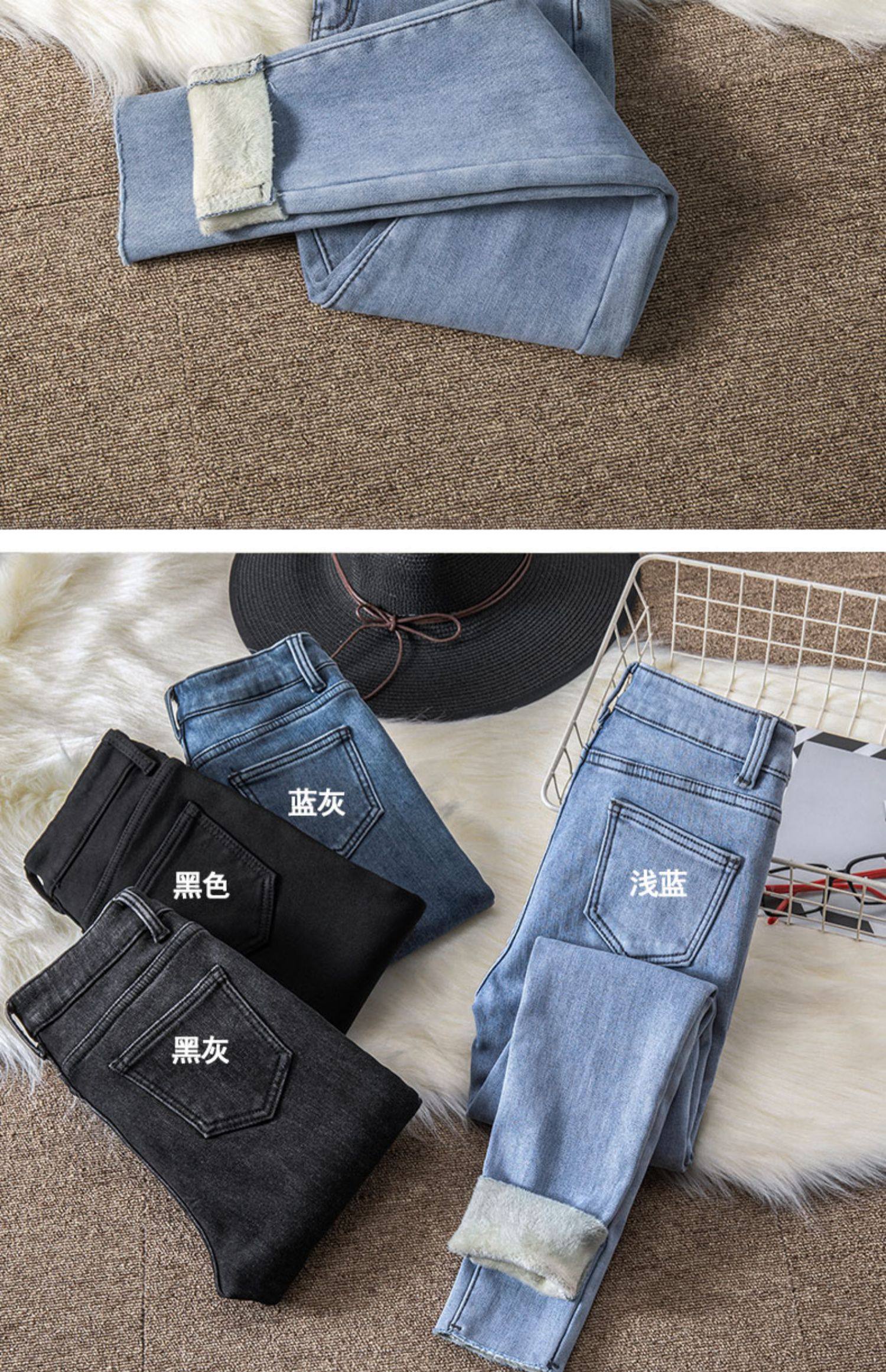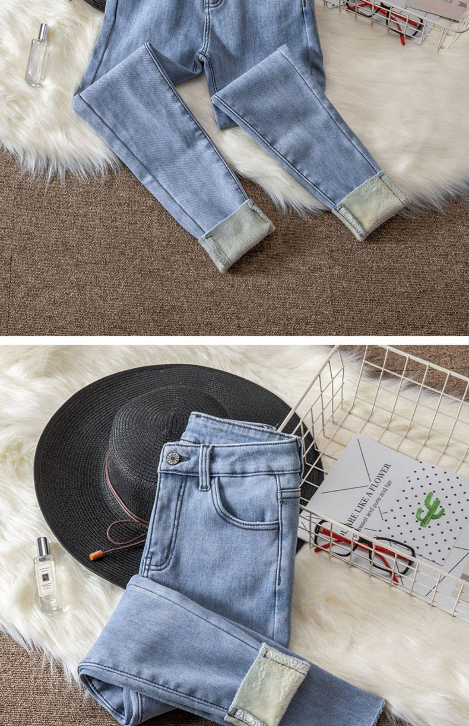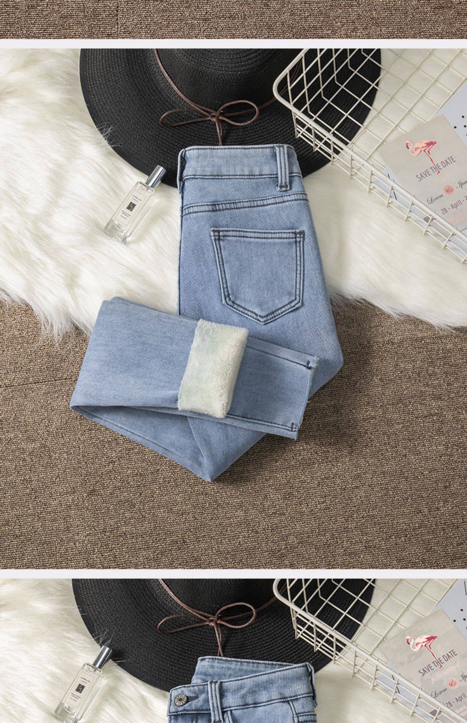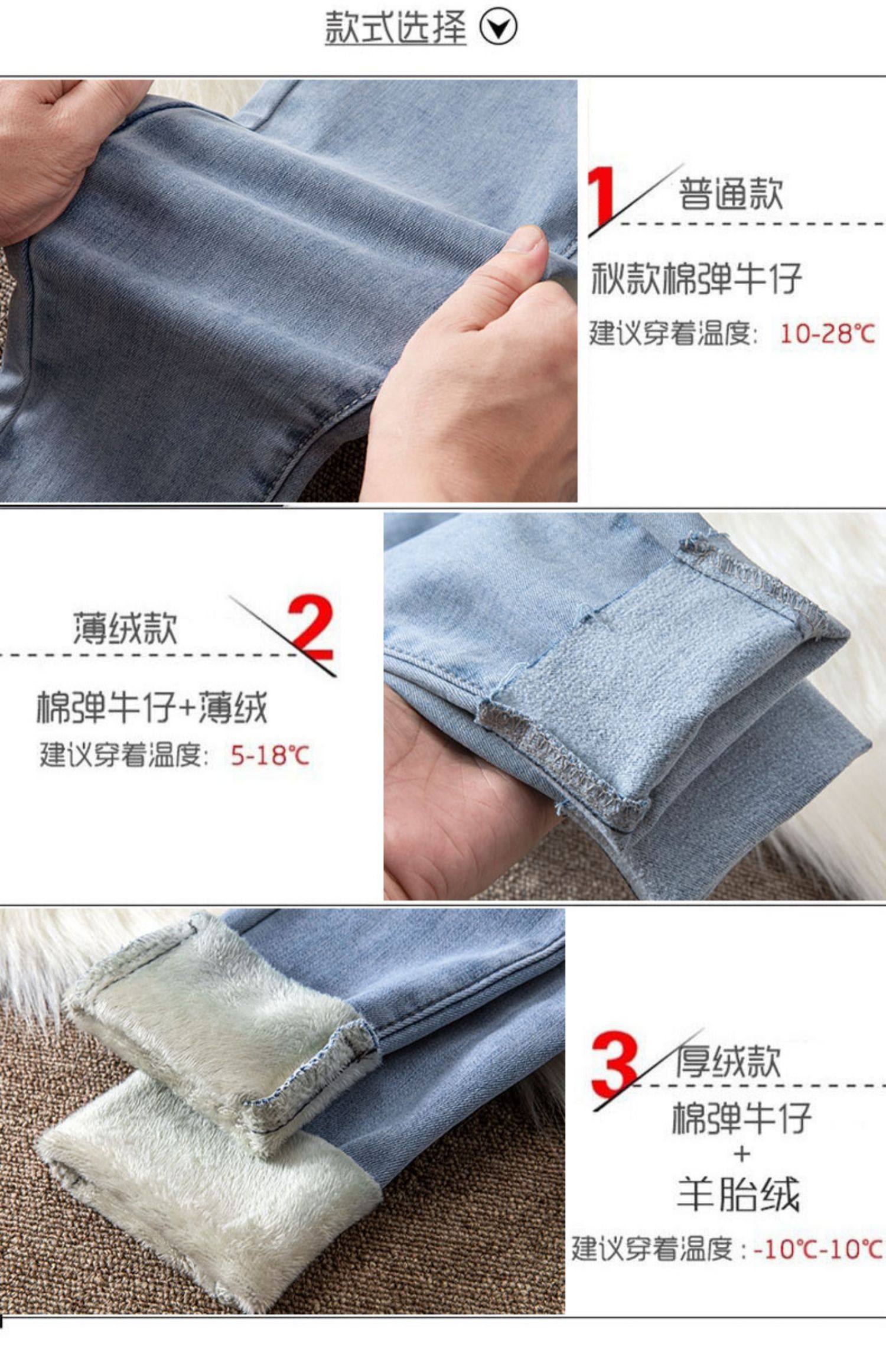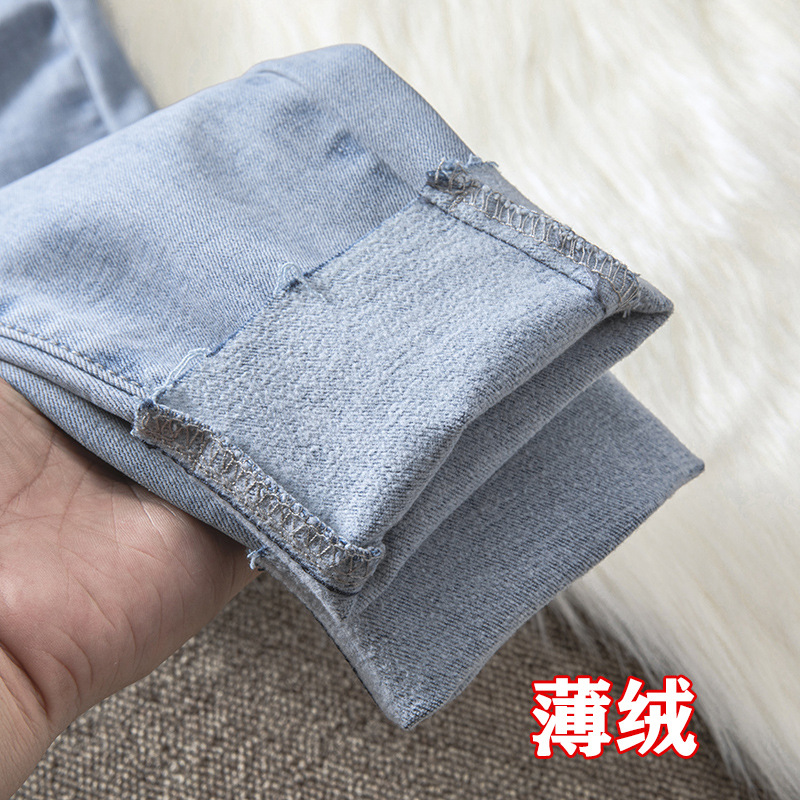 가벼운 색상 두꺼운 기모 청바지 여자의 겨울 2023 새로운 스타일 겉옷 슬리밍 하이 웨이스트 얇은 벨벳 작은 바지스토어 가기